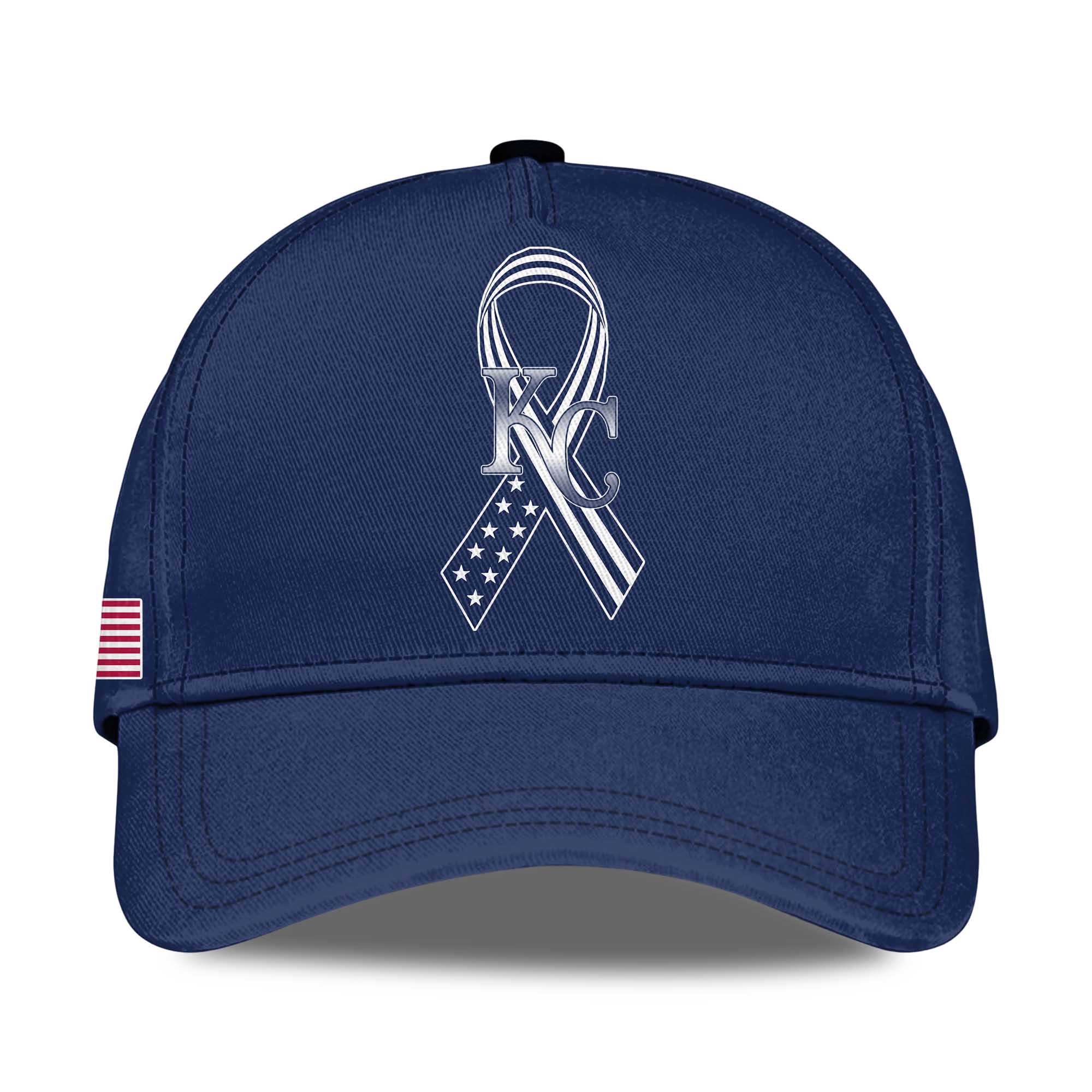 A deep navy blue base stands out, highlighted by the Royals lettering on the front. The red poppy detail symbolizes Memorial Day. On the back, the circular Remember and Honor logo stands out with a ribbon and the number 2026. American flag elements at the bottom reinforce the patriotic theme, while the camouflage sleeves offer a subtle military-inspired detail, blending seamlessly into the design.