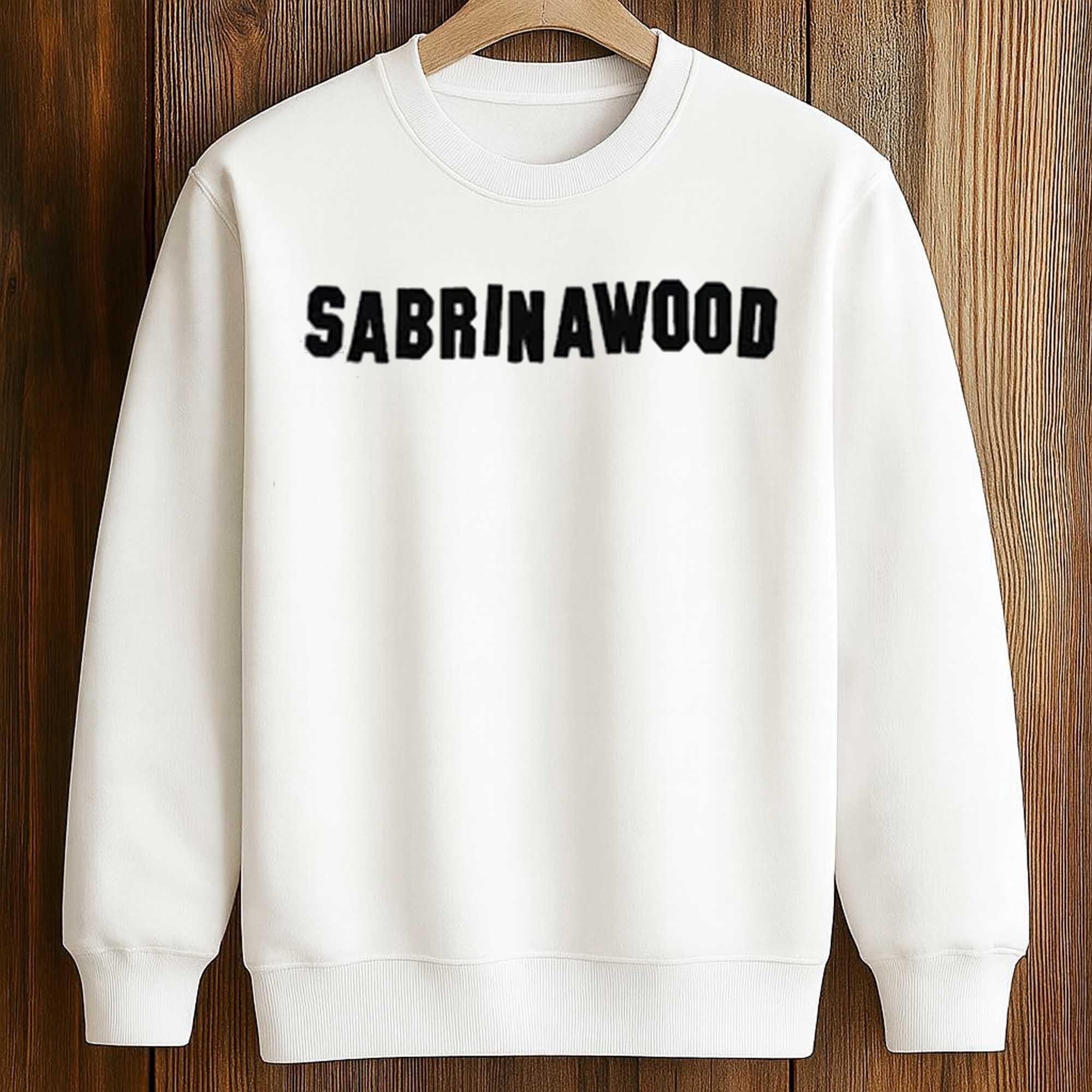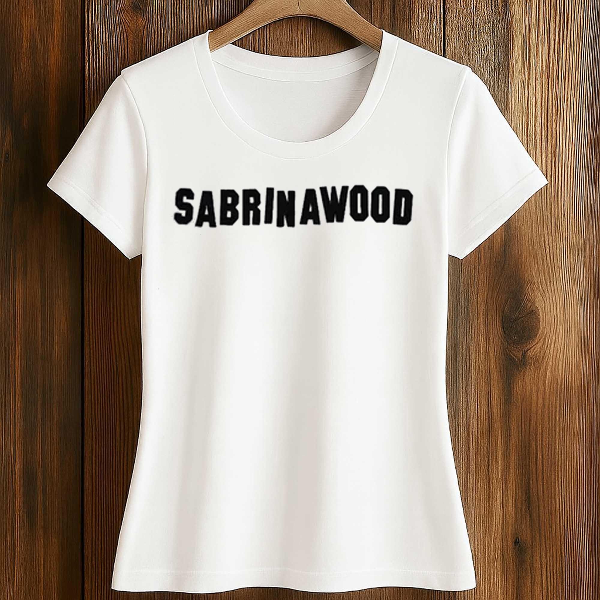 This shirt stands out with the bold lettering “SABRINAWOOD” printed prominently across the chest, utilizing a simple yet sophisticated collegiate-style font. The minimalist contrast between black and white creates a sharp, modern aesthetic, allowing the shirt to make a statement without appearing overly flashy. The centered graphic placement ensures a balanced design that pairs effortlessly with jeans, shorts, or layered outfits. It is precisely this graphic simplicity that enhances the shirt’s versatility, ensuring it remains a captivating piece that turns heads wherever you go.