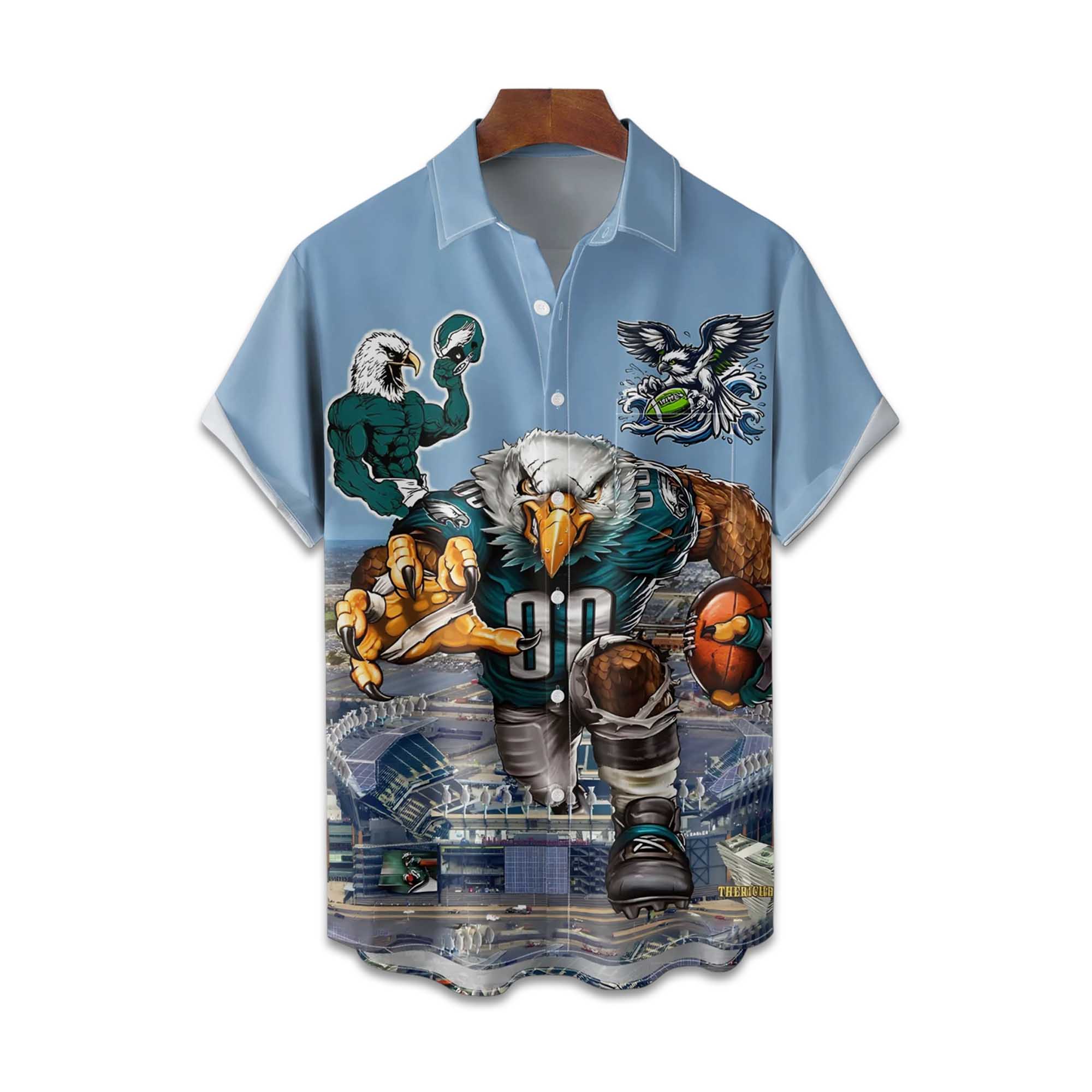 High-resolution heat transfer printing ensures sharp detail and vibrant, long-lasting colors. The image is layered for depth, combining football action elements with relaxed Hawaiian style. The loose fit allows for easy movement, while the soft, smooth fabric feels comfortable against the skin. This balance between striking graphic design and comfort makes the shirt visually impressive without sacrificing practicality.