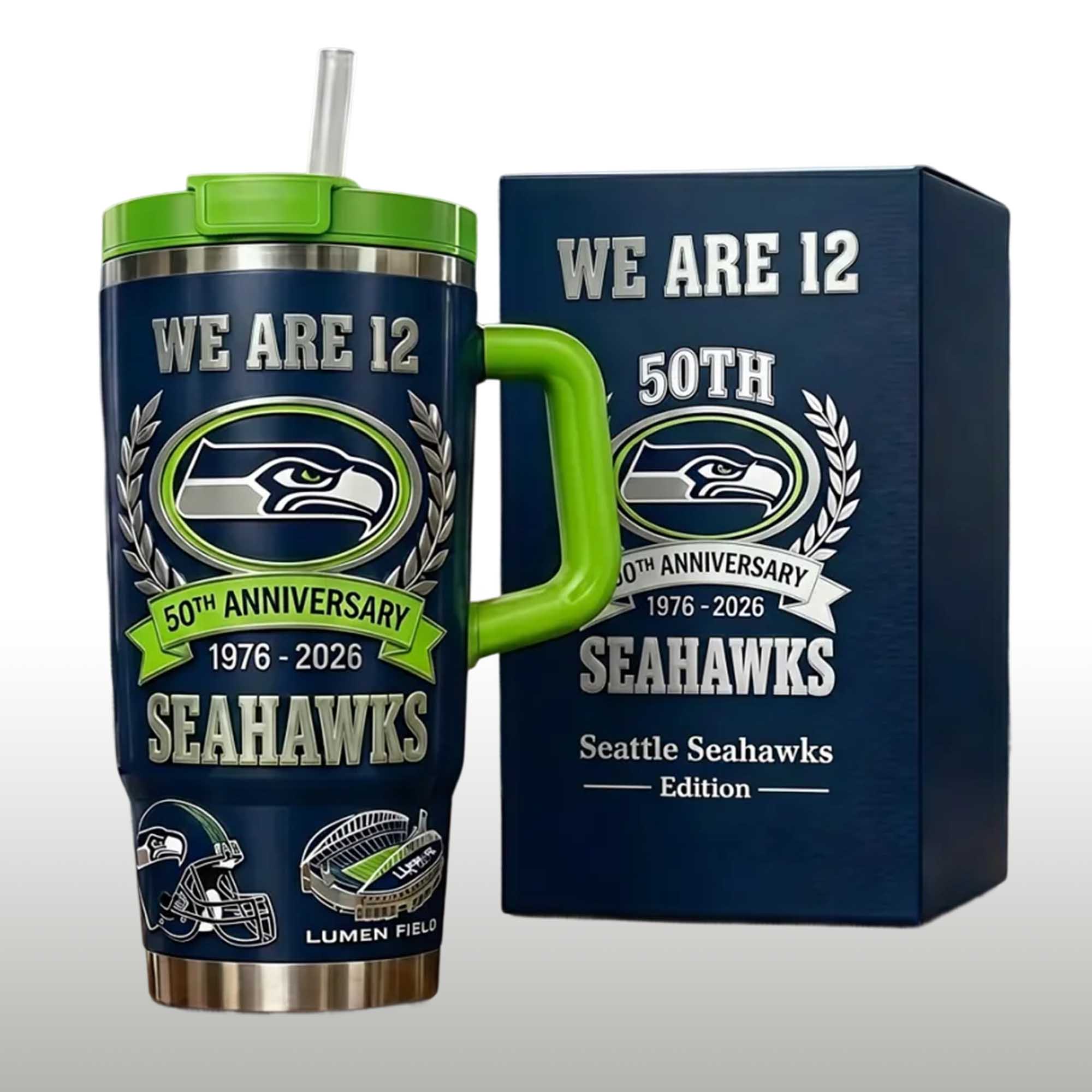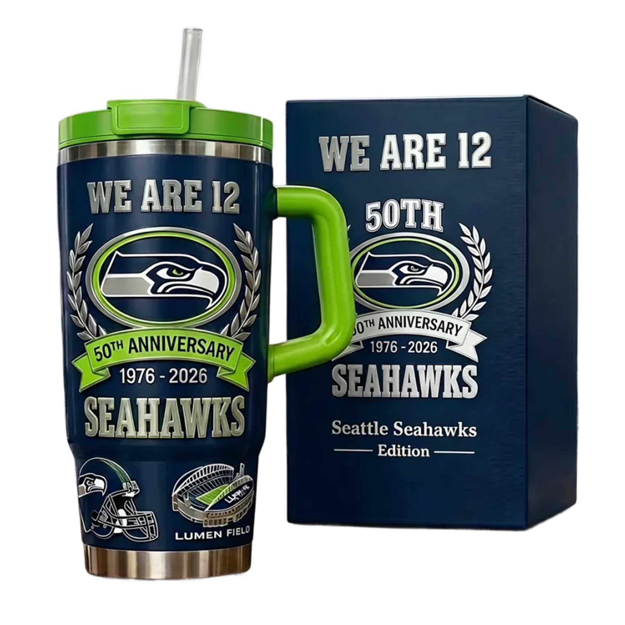 The Seahawks We Are 12 50th Anniversary 1976 2026 Tumbler was created as a tribute to one of the most passionate fan communities in sports. Marking 50 years of Seattle Seahawks history, this design highlights the legendary “We Are 12” identity. This commemorative edition reflects the unity, cheers, and loyalty values that have shaped Seahawks culture from its first game to the present day.