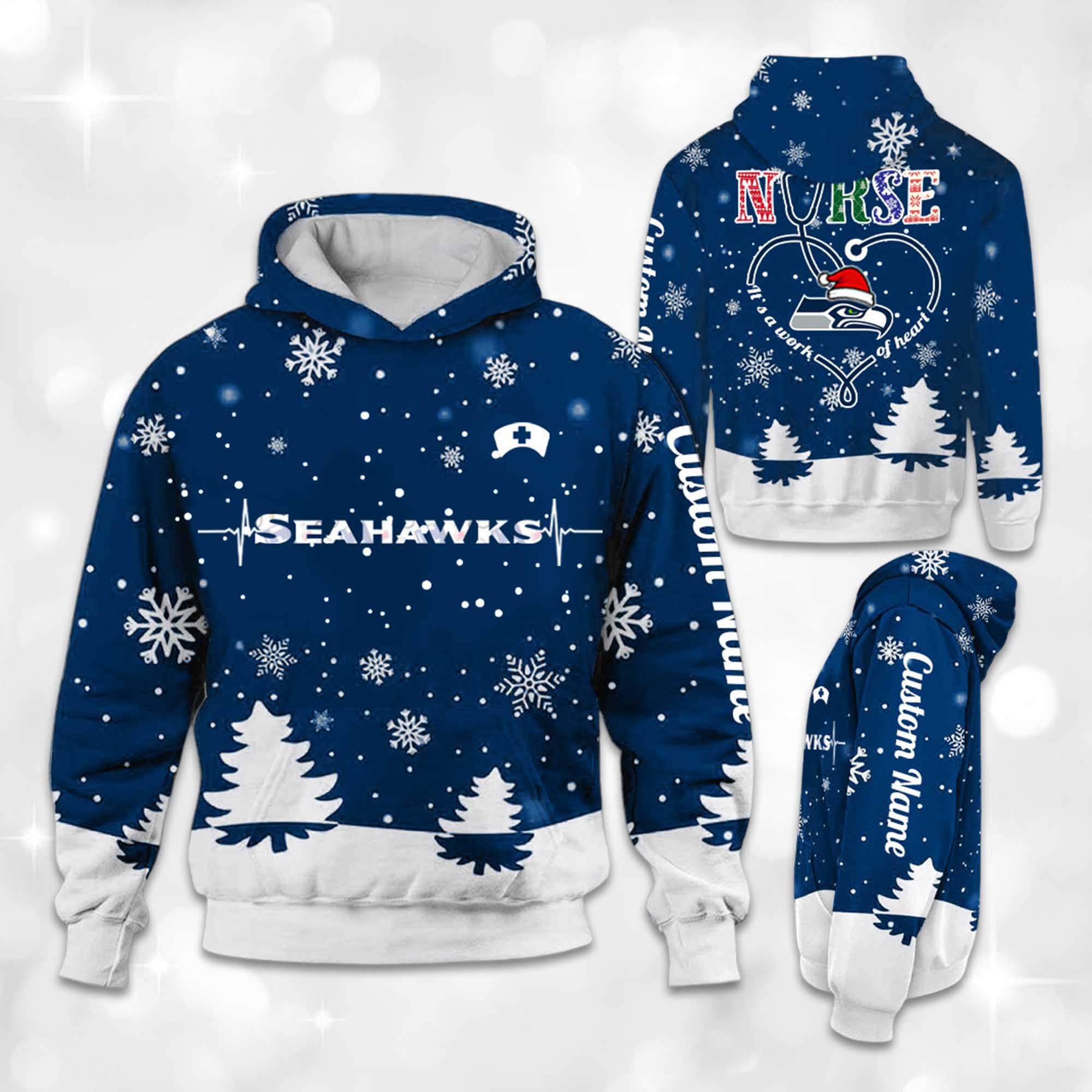Seahawks x Nurse Christmas Football Hoodie – Winter Pride Set for Fans