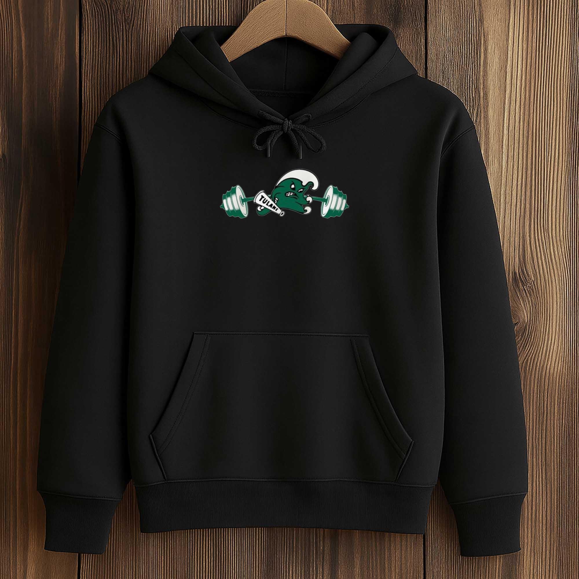 This design is inspired by Tulane’s vibrant athletic culture, gym life, and the iconic wave mascot known for its strong personality. The combination of weightlifting imagery and school pride creates a design that is both powerful and fun – something fans can wear to show off their energy, will, and college spirit.