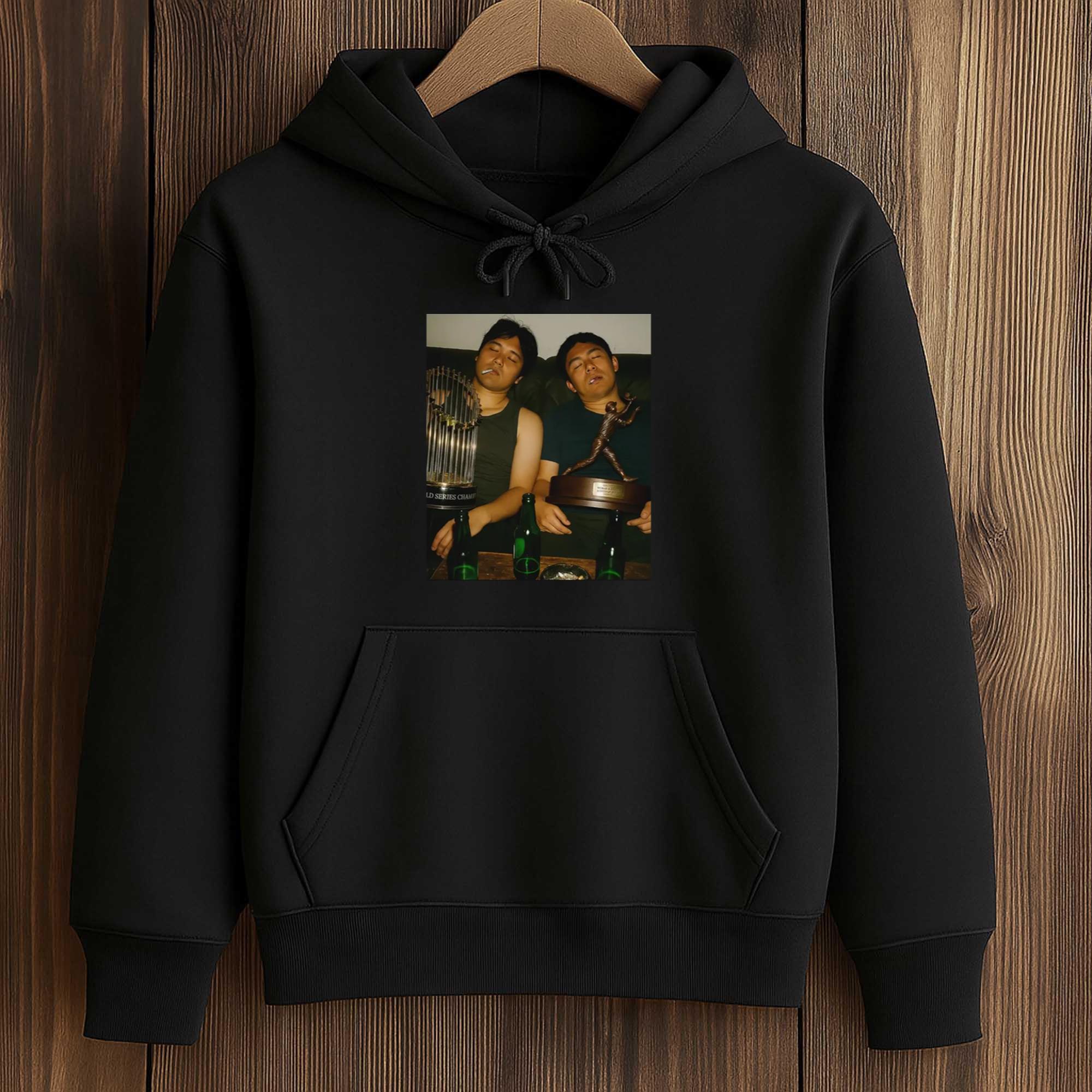 This tee captures a genuine, humorous moment that catches the eye. The print shows Ohtani and Yamamoto relaxing with their trophies – a playful image that’s both rebellious and gentle. The cotton is soft against the skin, perfect for everyday wear, whether you’re watching baseball or just lounging around. The print stays vibrant through wash after wash. The playful “Drink, Smoke & Smoke” quote on the back adds a touch of personality and humor that true baseball fans will instantly love.