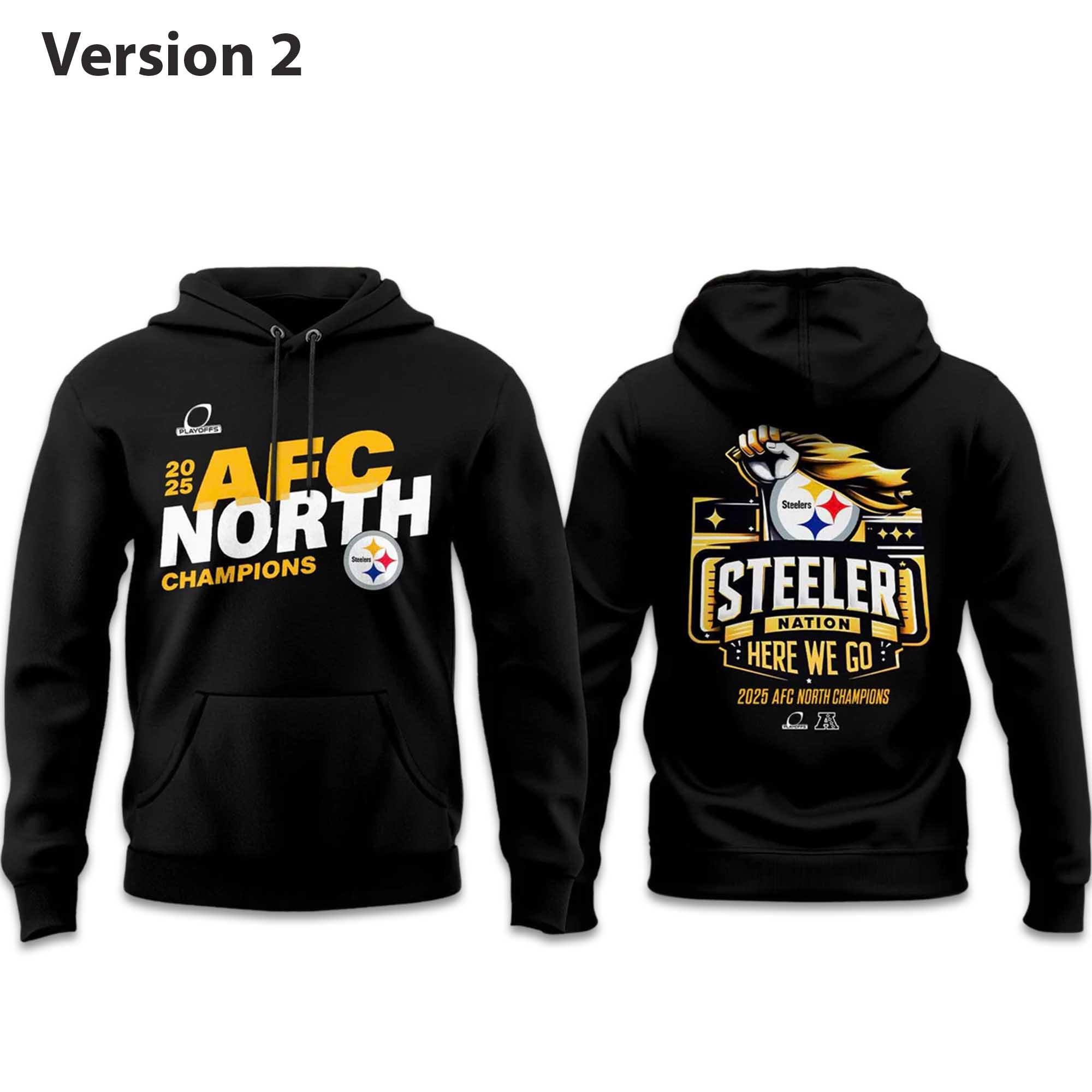 Steelers 2025 AFC North Championship Here We Go Hoodie – Fierce Pride, True Energy