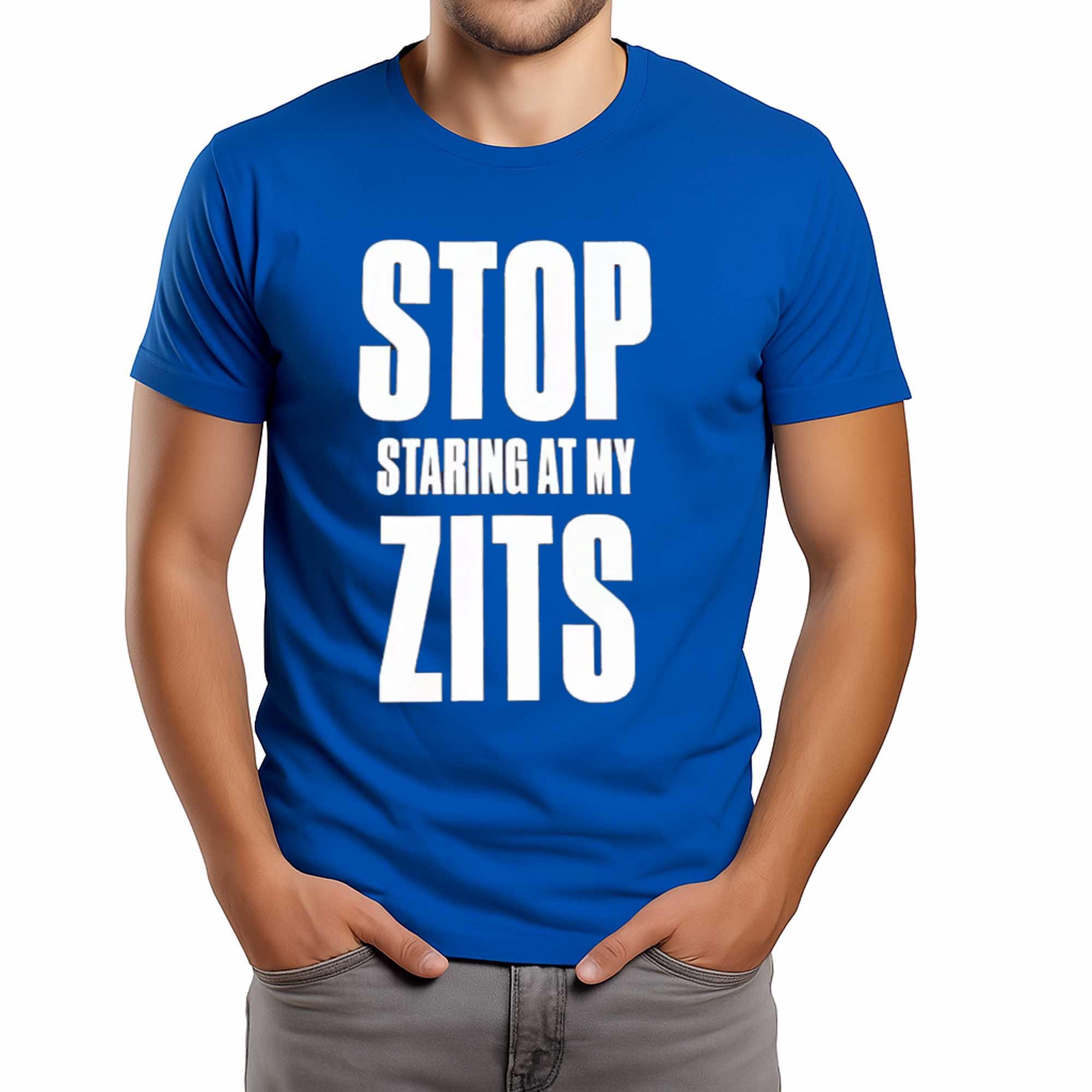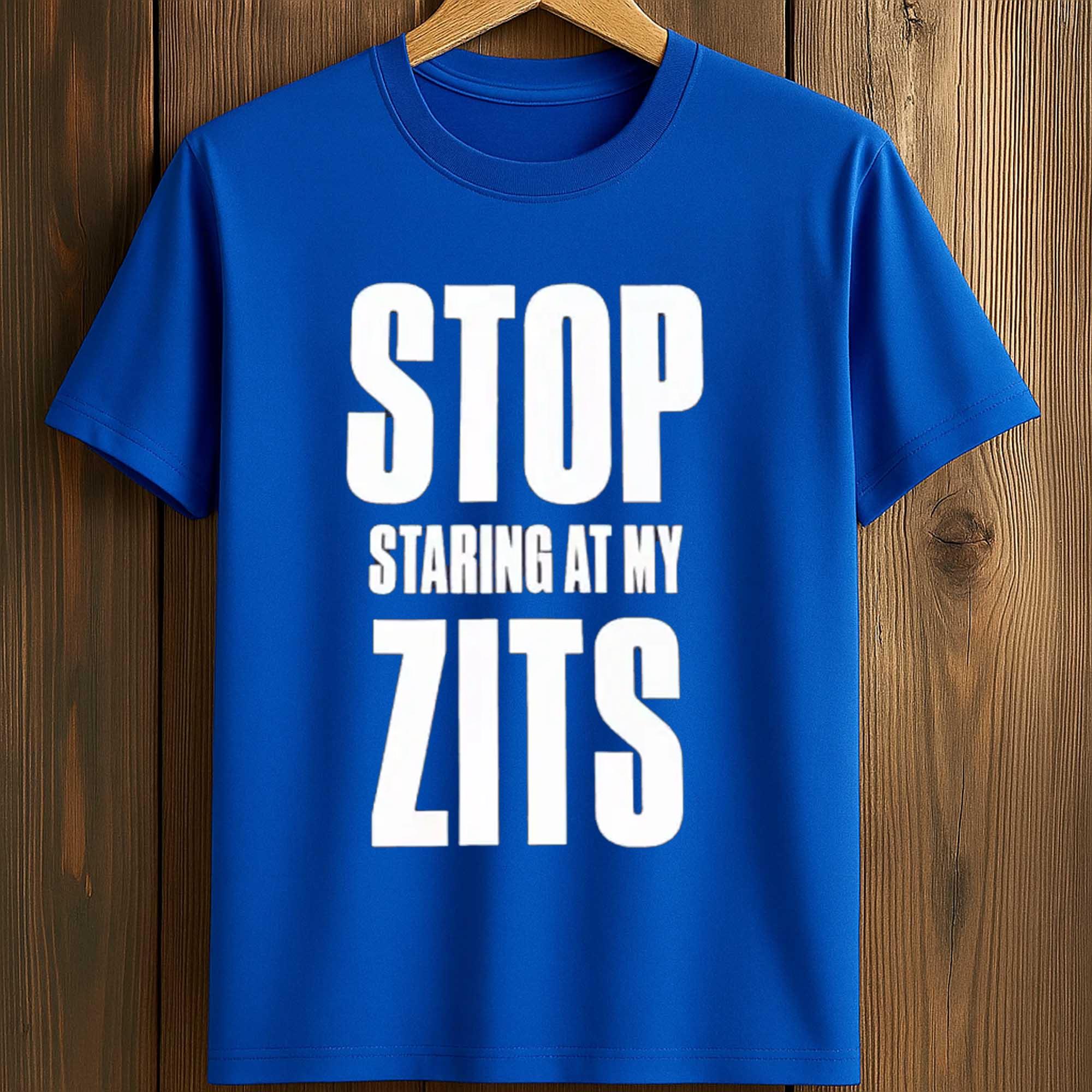 The Stop Staring At My Zits Shirt reflects a growing trend in casual fashion where humor and honesty become part of personal style. Printed t-shirts with bold quotes are gaining popularity because they allow people to express their personality in a fun and relaxed way. This shirt conveys a playful message that immediately grabs attention while maintaining a simple, clean design that’s easy to coordinate with everyday outfits.
