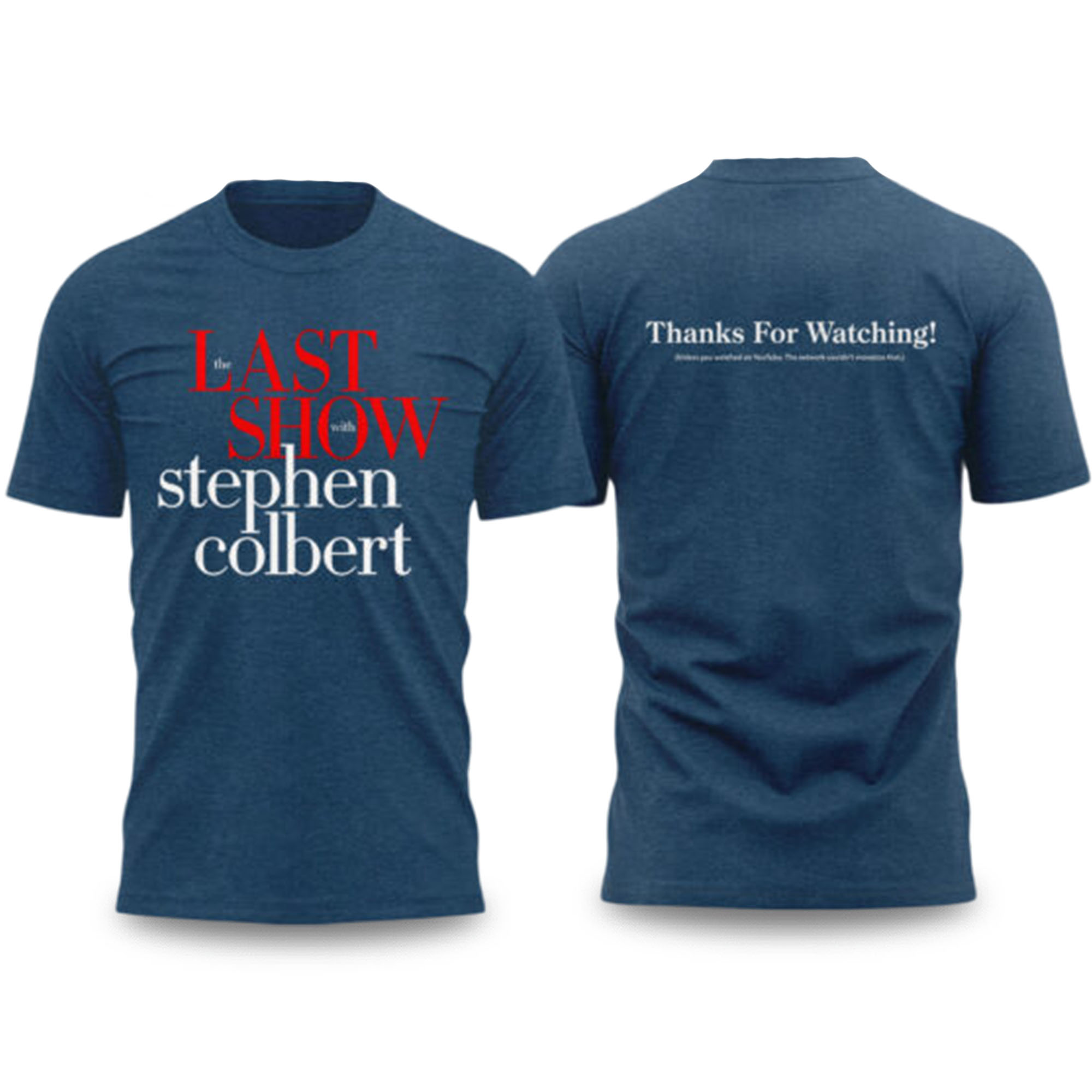 The The Late Show with Stephen Colbert Shirt offers a stylish and modern look for fans of the late-night television show. The front features striking red and white lettering, highlighting the show’s identity, while the back subtly conveys the message Thank you for watching. The soft and breathable material is suitable for all-day wear. The relaxed fit allows for easy movement and is easy to pair with everyday outfits, creating a balance between comfort and personality.