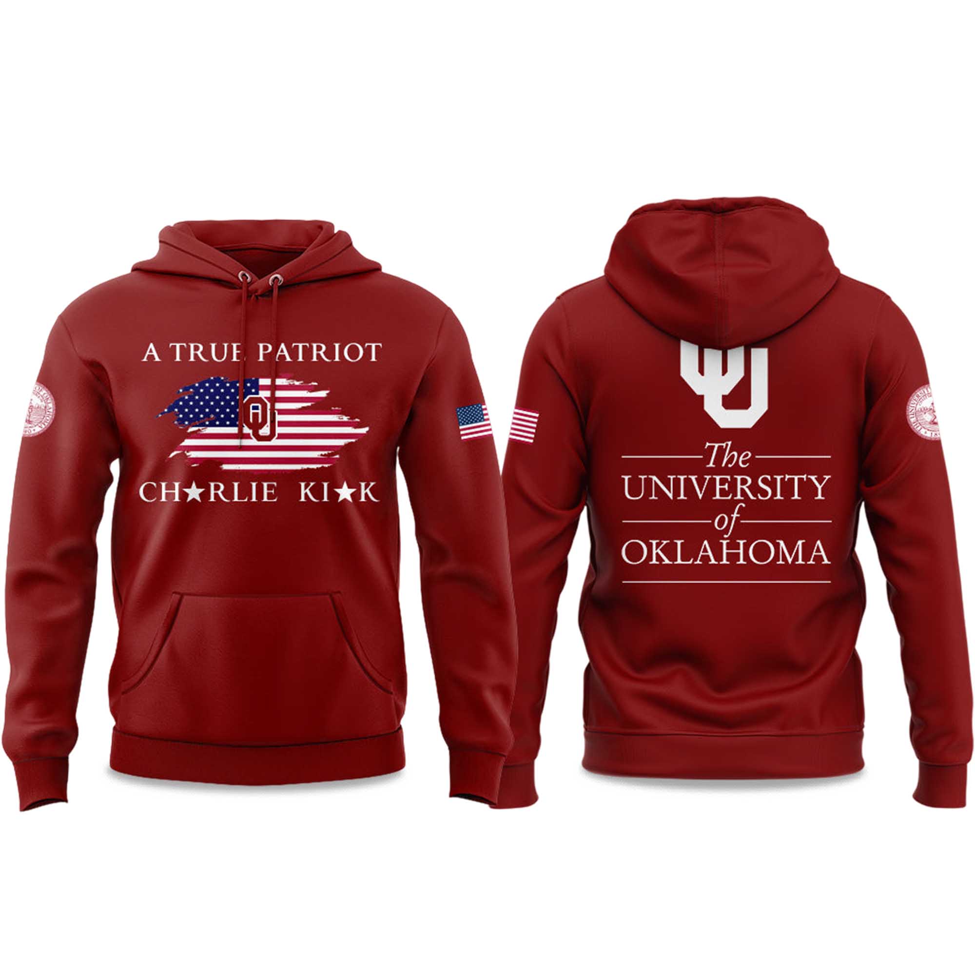 The The University Of Oklahoma A True Patriot Charlie Kirk 2025 Hoodie symbolizes strength, unity, and belief in American values. Combining Sooner heritage with the message of “A True Patriot,” this hoodie honors those who stand firm in their faith and freedom. Designed for 2025, this hoodie is the perfect balance of meaningful design and modern comfort – ideal for students, alumni, and proud Americans.