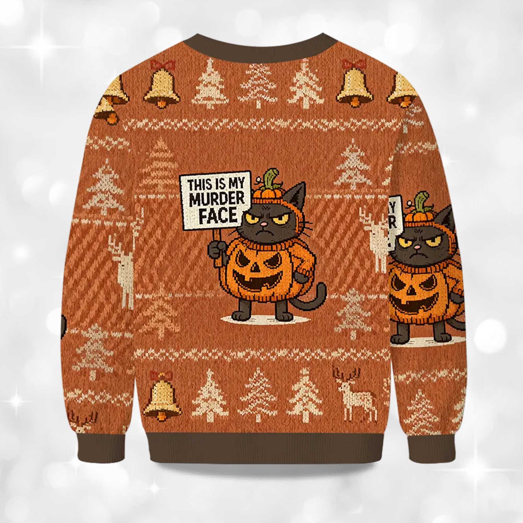 “This Is My Murder Face” Ugly Christmas Sweater – Playful Cat Style for Your Holiday Look