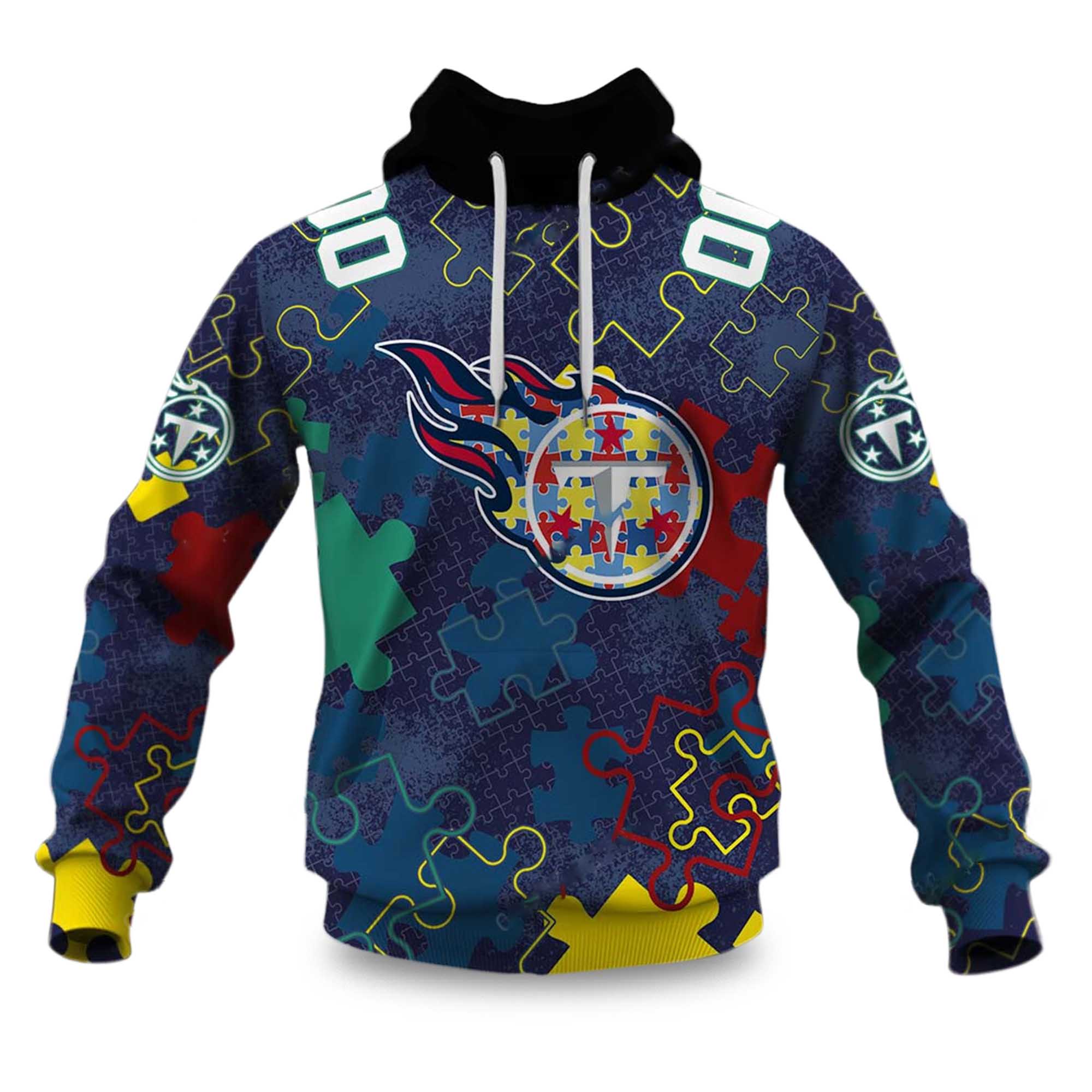 The Titans Autism Awareness Football Hoodie 2026 reflects a powerful shift in fan culture, where sportswear carries deeper meaning. The 2026 update focuses on vibrant jigsaw puzzle imagery, clearer Titans-inspired icons, and a balanced color scheme. This hoodie emphasizes unity and awareness while maintaining the bold look that football fans expect.