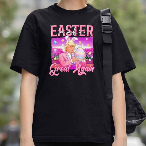 The shirt typically features traditional Easter imagery such as bunnies, eggs, or pastels along with the popular campaign slogan. The aesthetic retains the recognizable red, white, and blue color scheme associated with Trump’s campaign merchandise while incorporating seasonal touches that make it suitable for Easter gatherings and celebrations.