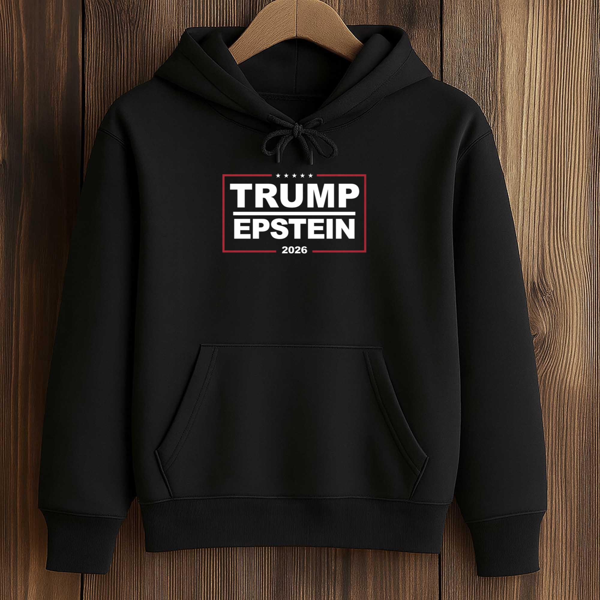 The Trump Epstein 2026 Shirt features a striking image on the front with bold white capital letters bordered in red on a dark black background. The year “2026” appears below the main text, completing the centered layout. The neat rectangular frame enhances readability while maintaining a modern, sharp street style. Designed for those who prefer clothing that expresses their personality, this shirt combines visual clarity with everyday comfort, suitable for events, casual outings, or striking fashion looks.