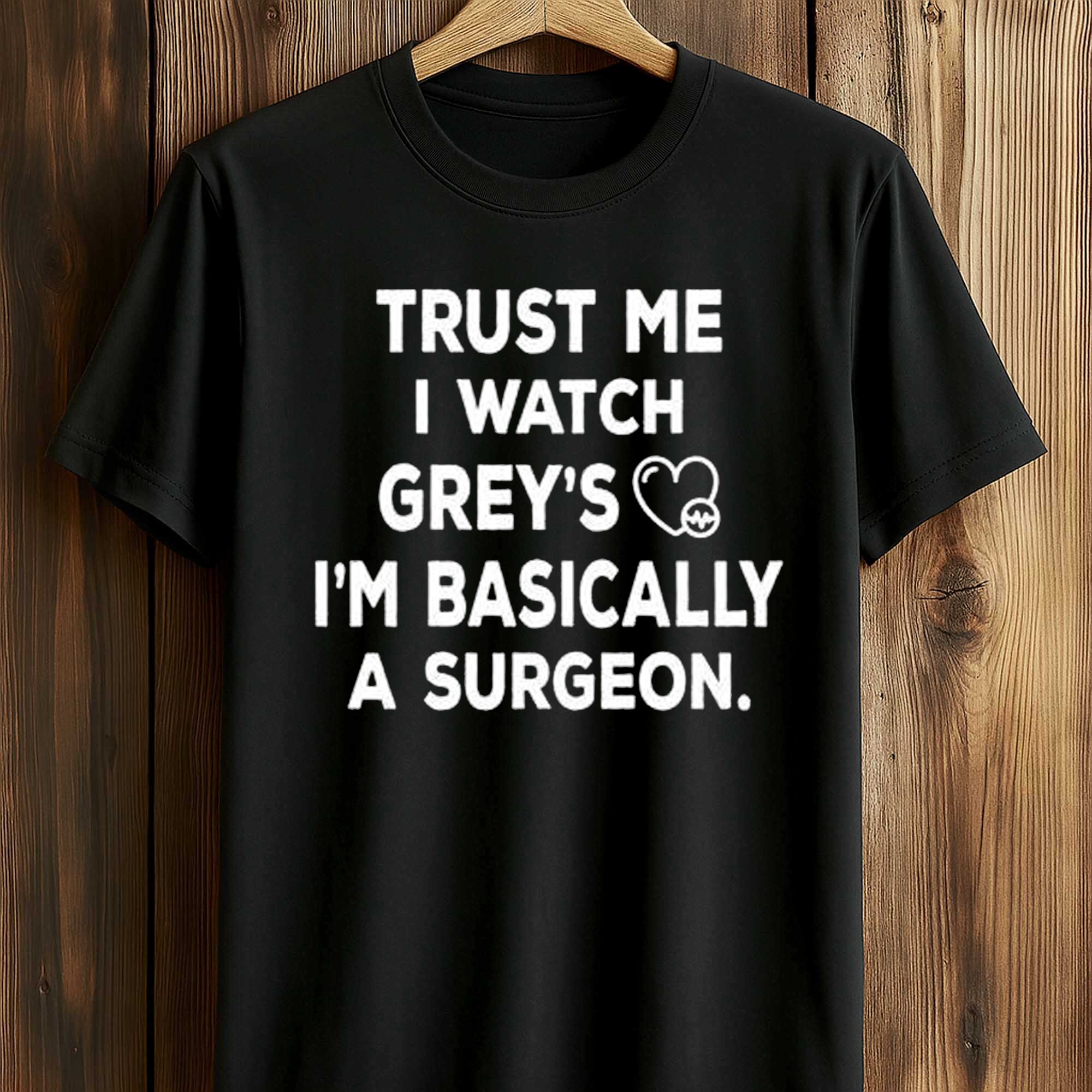 Trust Me I Watch Grey’s I’m Basically A Surgeon Shirt reflects the humor and passion of fans who have spent countless hours watching classic moments from medical dramas. This witty quote has become an easily understood joke on social media, and now it’s creeping into everyday fashion. Perfect for those who like to combine passion with lighthearted humor.