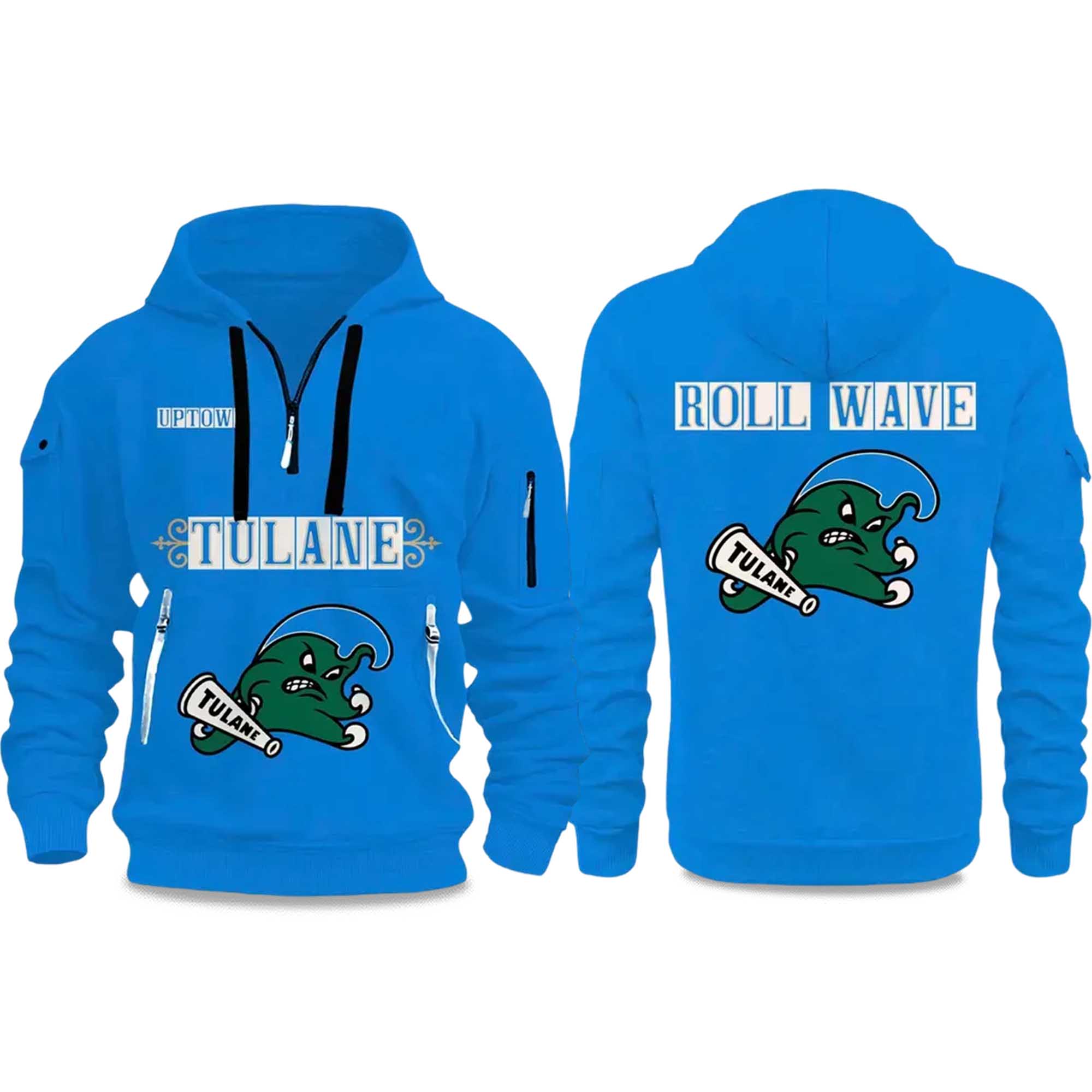 This design was inspired by the hard-working energy Coach Sumrall brings to Tulane football. Fans love the RMFW message because it represents determination and pride, and this hoodie reflects that. The bright colors and mascot come directly from Tulane’s visual spirit, creating a sense of community and a unique team identity.