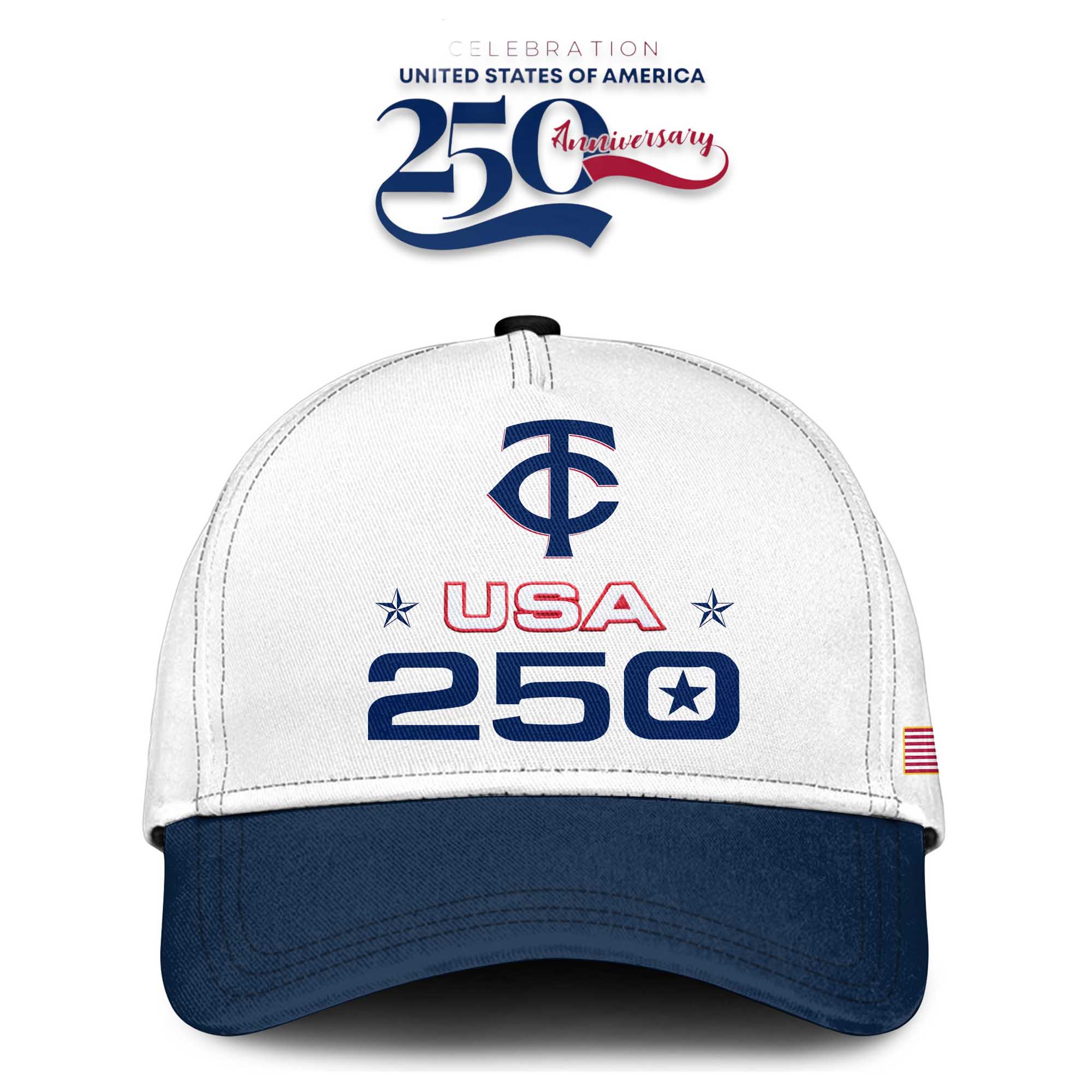 Every detail serves a purpose. The American flag patch on the sleeve adds a strong patriotic touch, while the commemorative typography connects directly to the 2026 milestone. The Minnesota Twins logo remains centrally positioned, creating a balanced, modern, formal, and visually powerful design without being overly ornate.