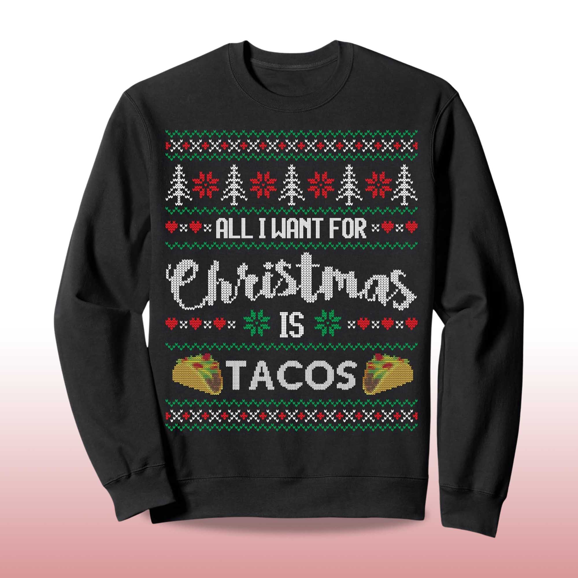 Ugly Christmas Sweater, All I Want Is Tacos 2025 – Holiday Fun for Taco Lovers