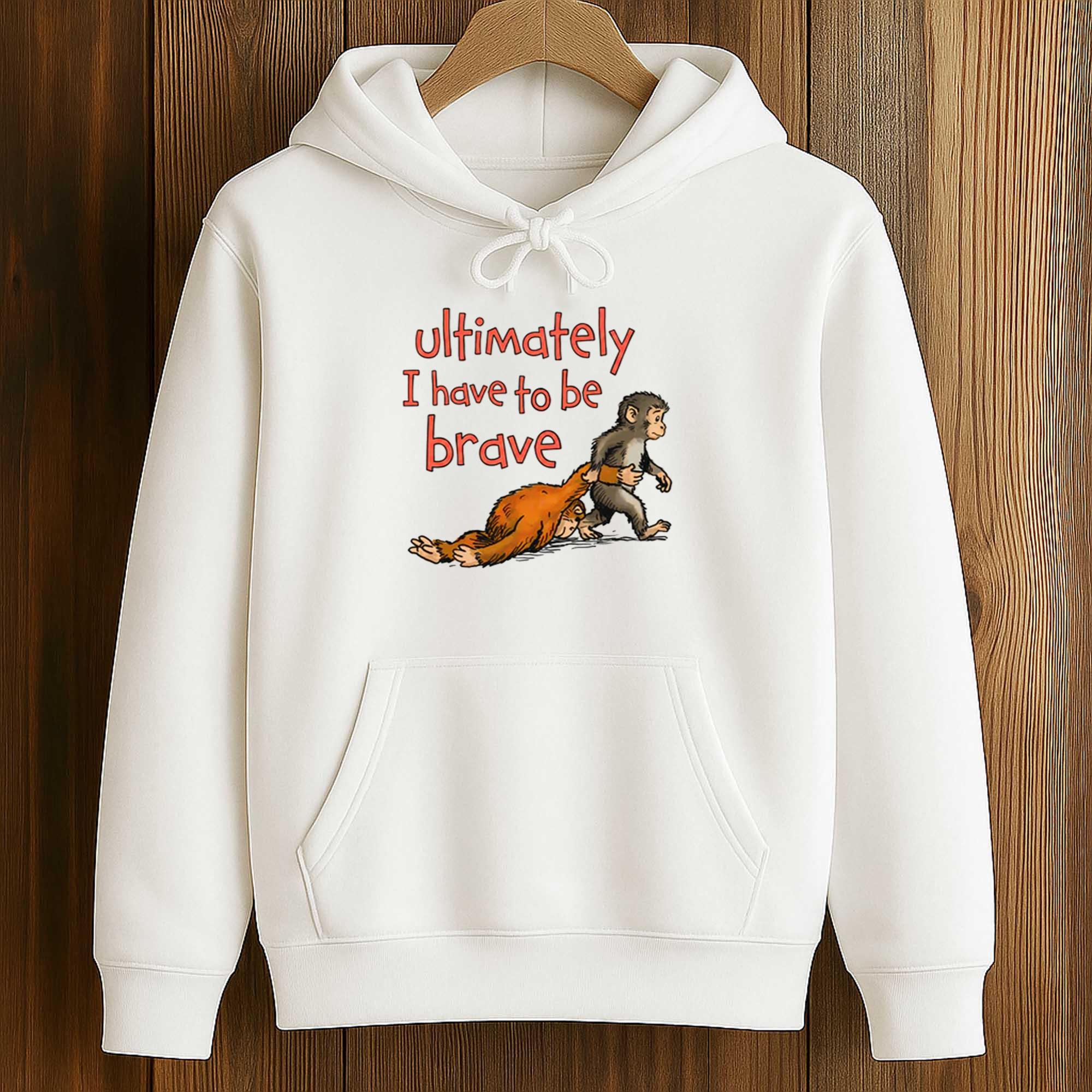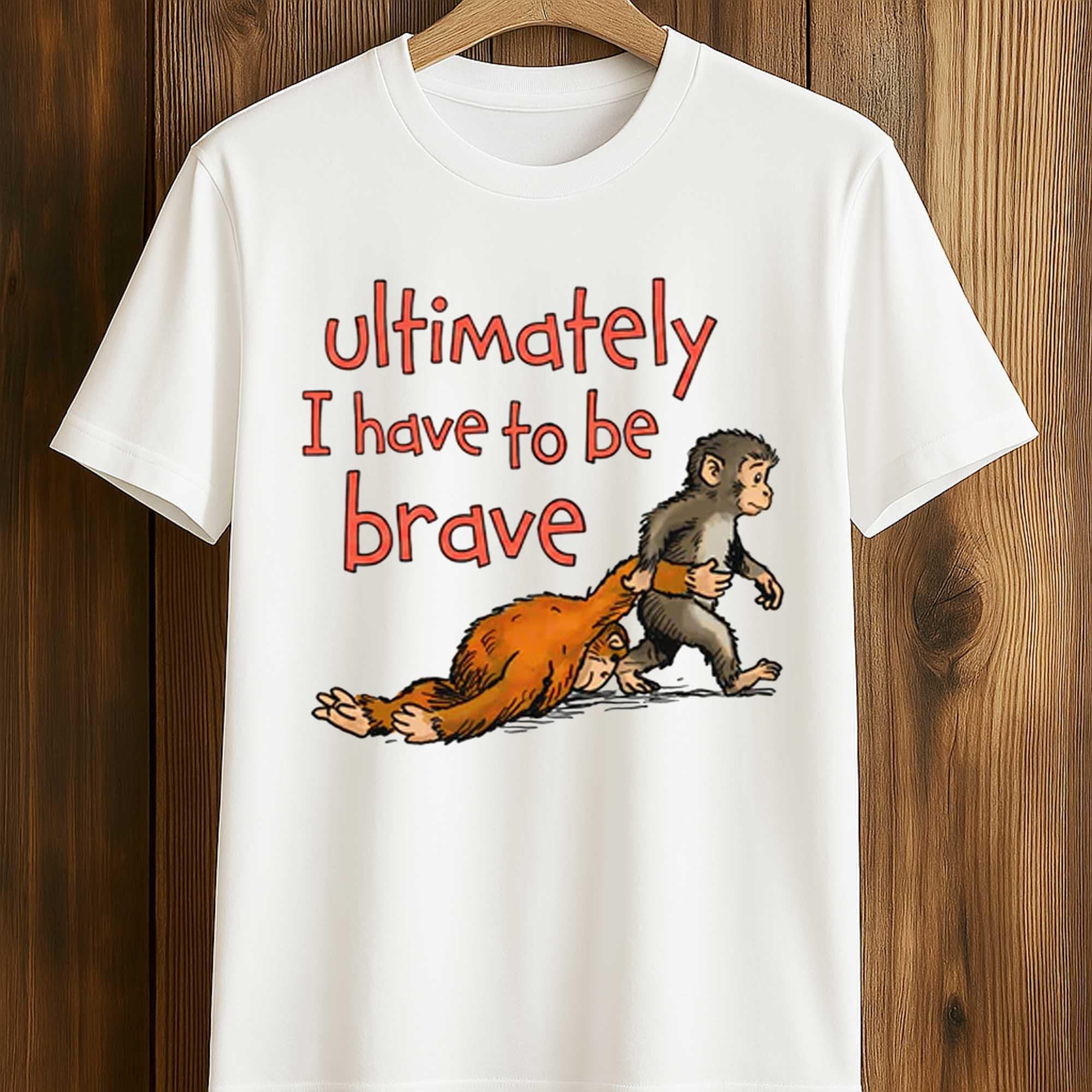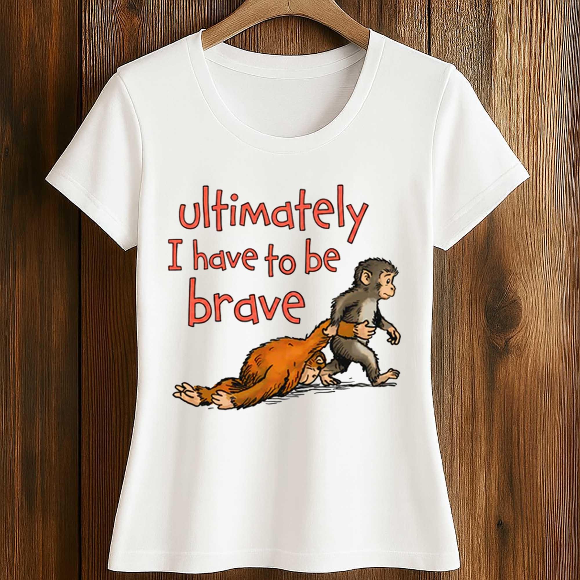 The Ultimately I Have To Be Brave Shirt is gaining popularity on social media thanks to its emotional story and expressive imagery. Inspired by viral cartoon illustrations, the design shows a small monkey stepping forward while pulling a larger human figure, symbolizing the struggle to overcome emotional burdens.