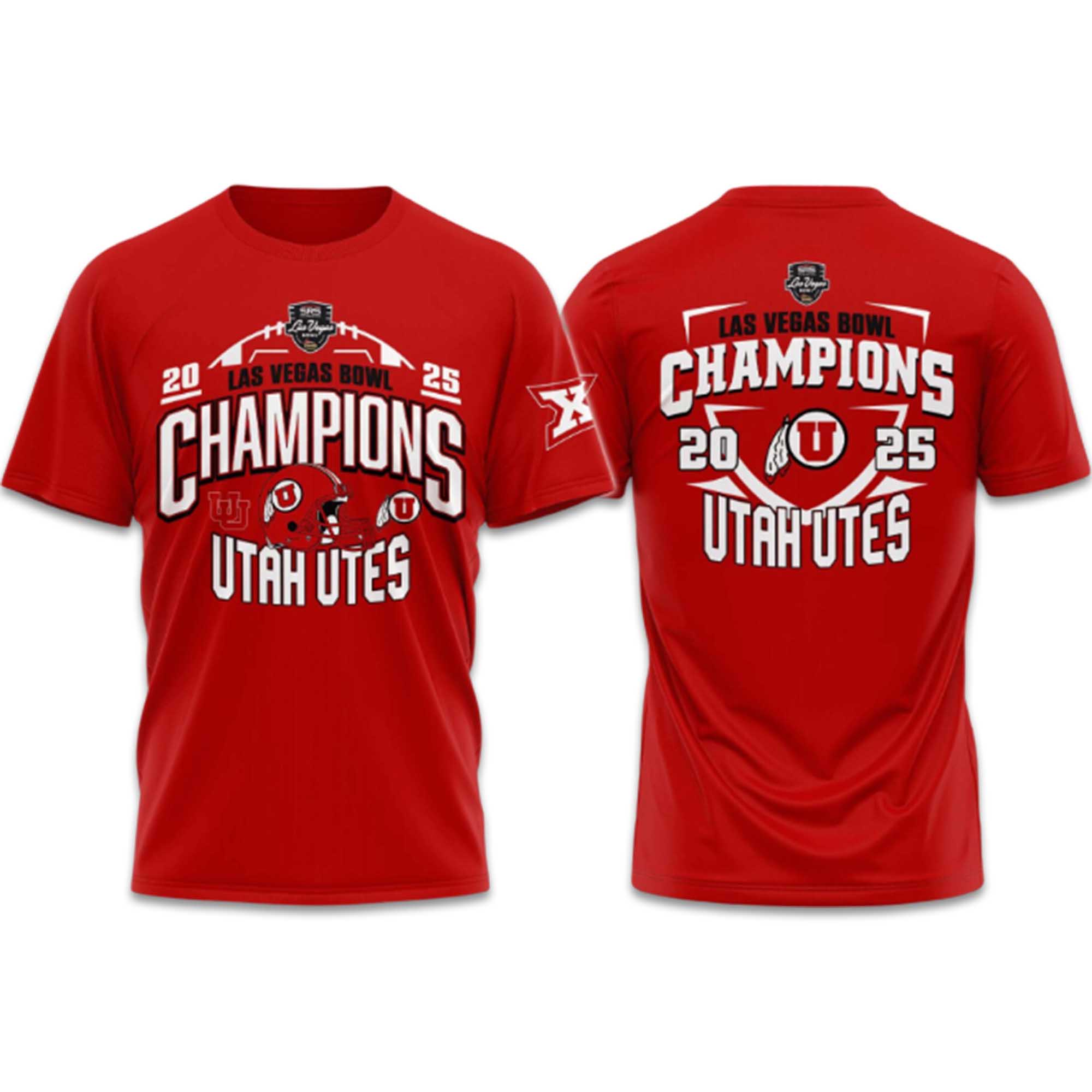 This shirt uses Utah’s signature red as its main color, instantly drawing attention. The front image highlights the Las Vegas Bowl Championship theme, while the back design reinforces team pride with bold typography and a balanced layout. The simple short sleeves and crew neck make it easy to pair with jeans, shorts, or layered outfits.
