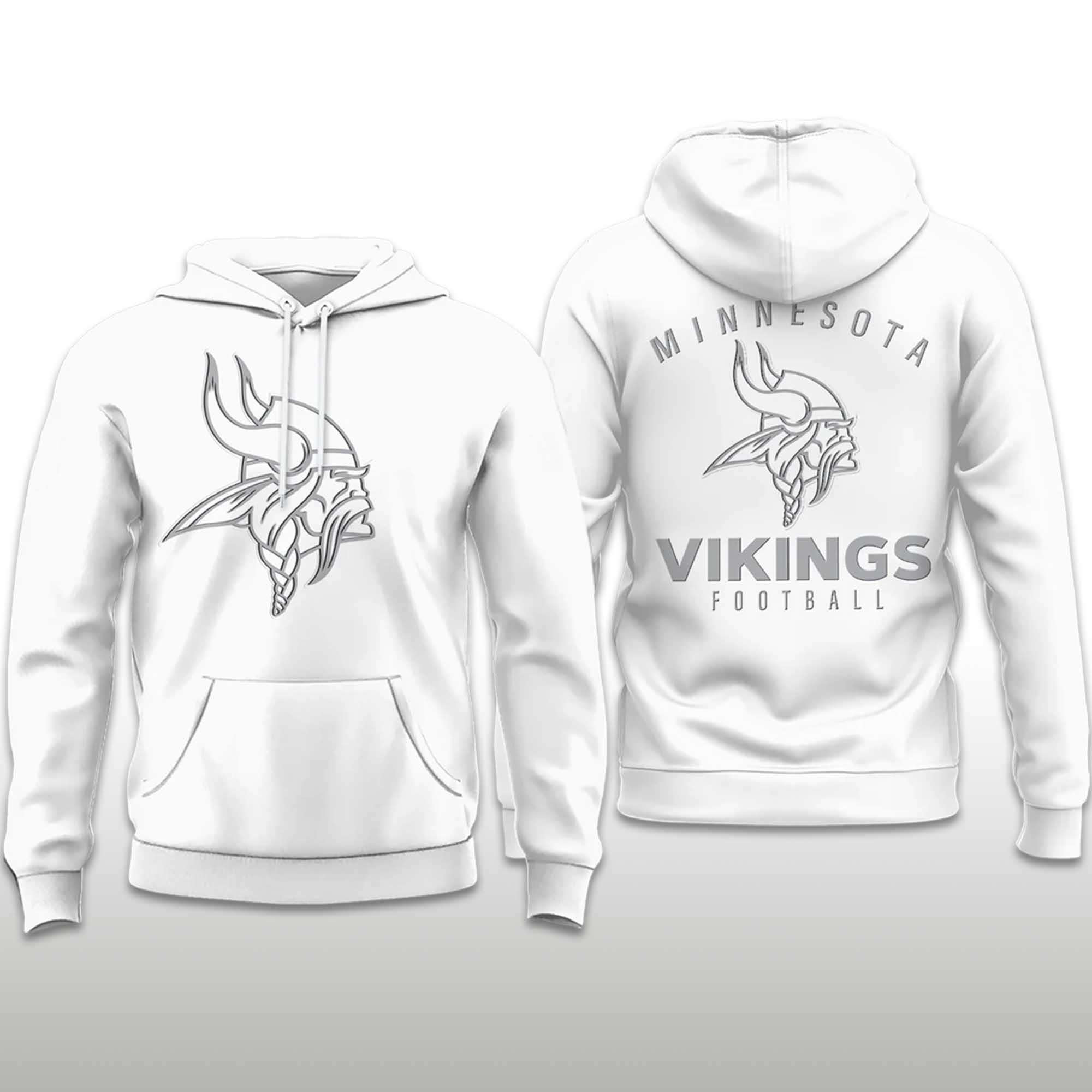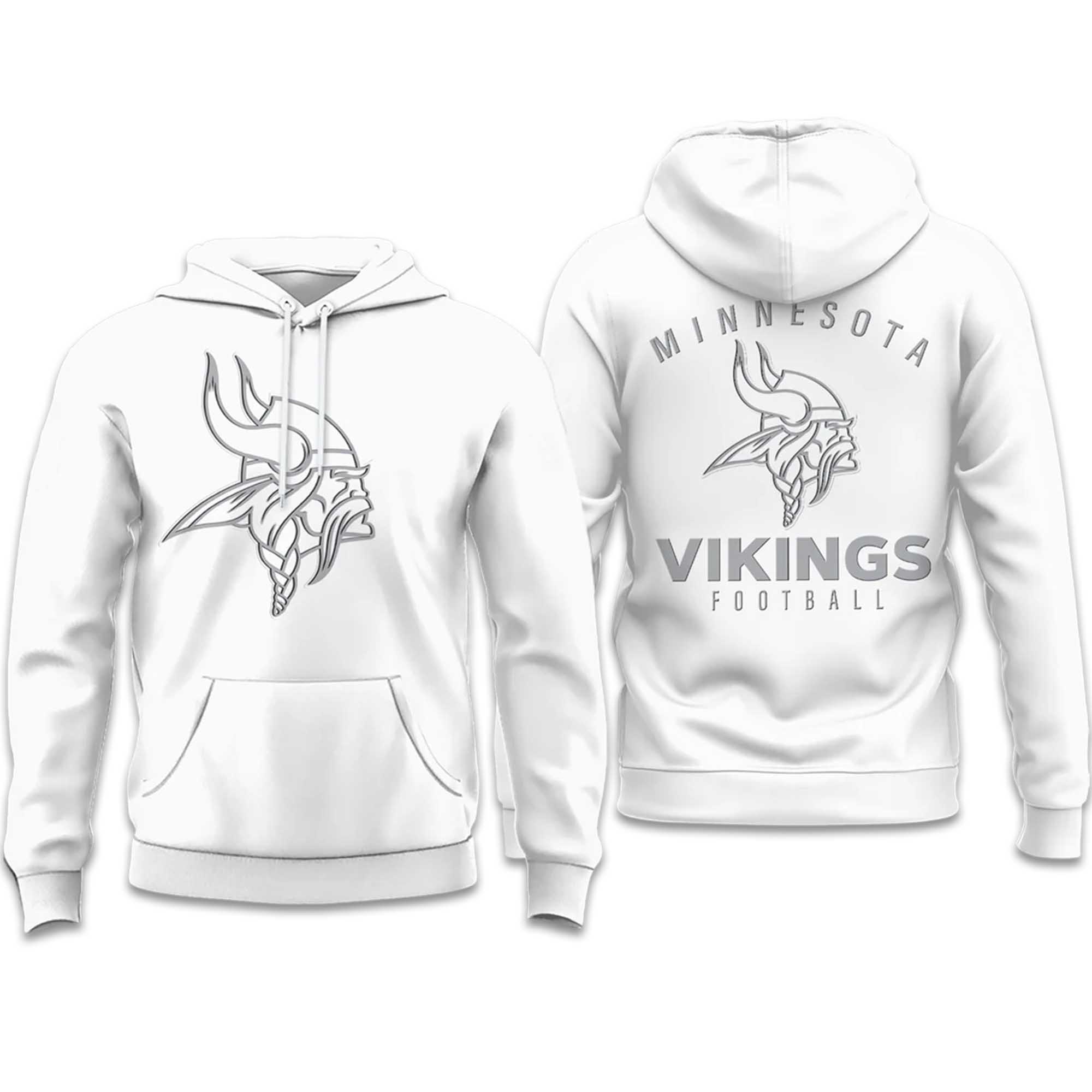 The Vikings 2025 Winter White Out Hoodie offers a fresh winter look inspired by winter games and football culture in cold climates. Designed for Minnesota Vikings fans, this hoodie stands out with its pristine white color, making it a standout in a crowd while maintaining the team’s strong identity for the 2025 season.
