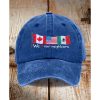 The We Heart Neighbots Hat is a stylish distressed black baseball cap with an embroidered design of the Canadian, US and Mexican flags along with the phrase “We heart our neighbors”. This thoughtful accessory celebrates the unity and friendship between the three North American countries, making it a fashion statement and a symbol of international goodwill.