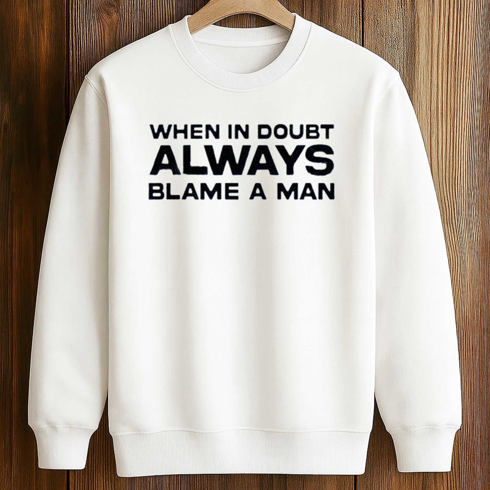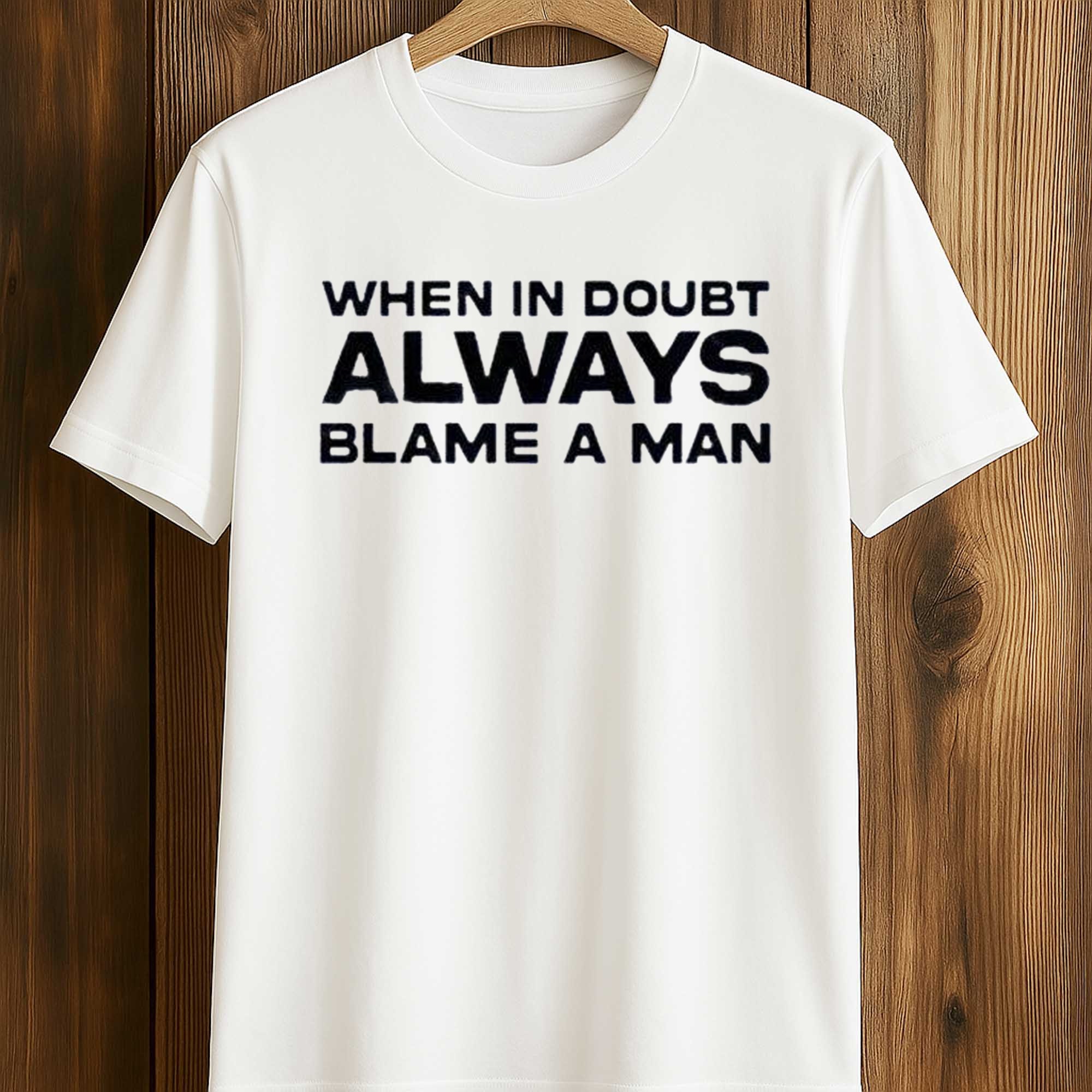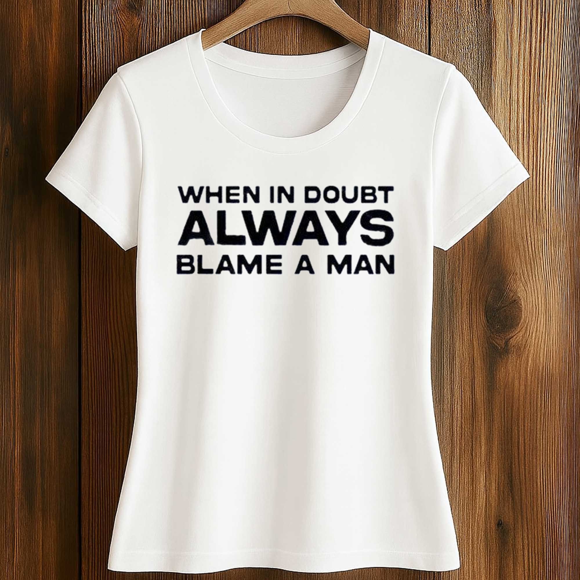 Statement t-shirts are becoming a powerful voice in modern fashion, and this design fits perfectly. With its sharp, playful message, the When In Doubt Always Blame A Man Shirt taps into popular humorous trends on social media and streetwear culture. It reflects a lighthearted, satirical tone that resonates with young people and meme-inspired fashion enthusiasts.