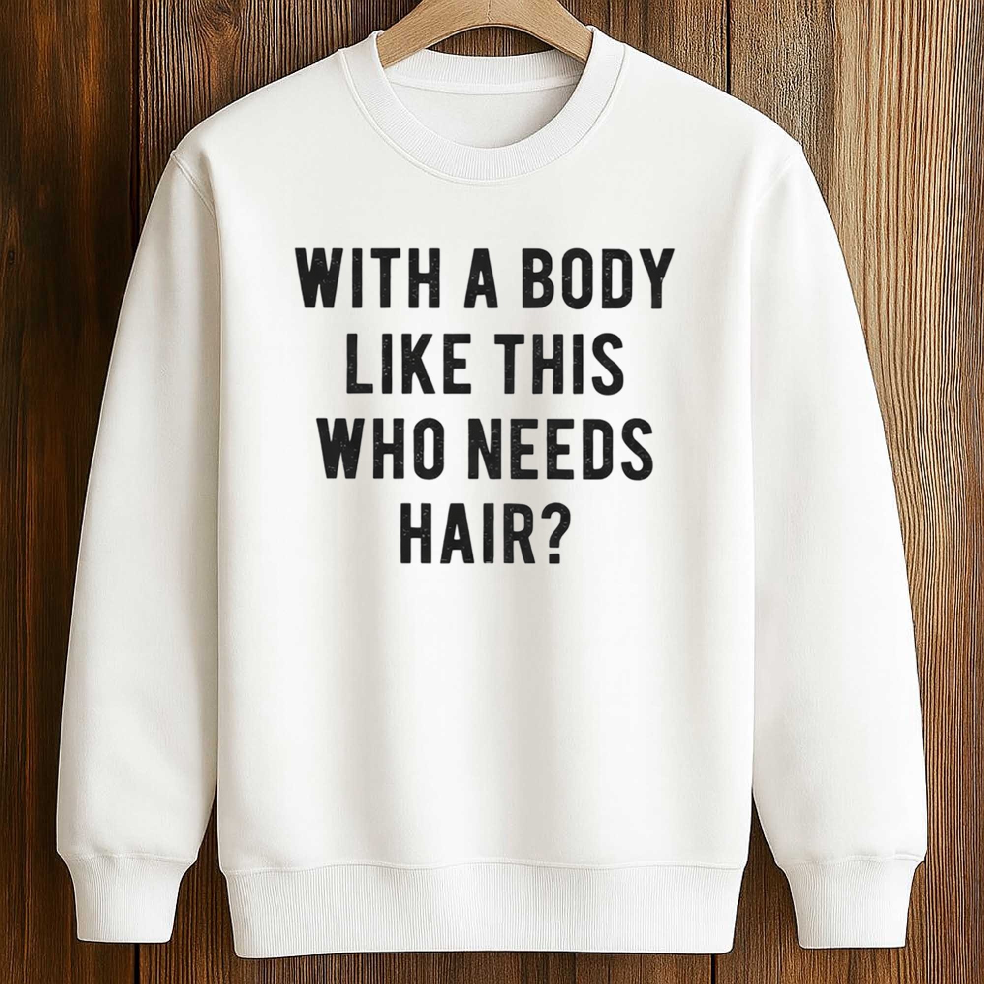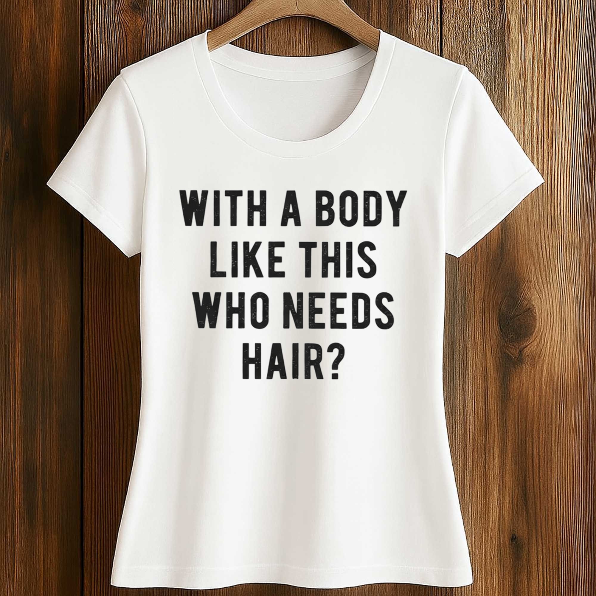 T-shirts with humorous slogans are trending, and this design stands out with its simple yet bold message. The With A Body Like This Who Needs Hair Shirt expresses confidence and carefree attitude. It’s the kind of shirt that makes people smile while showing you’re not too serious about yourself. The balance between humor and personality is what makes it so popular today.