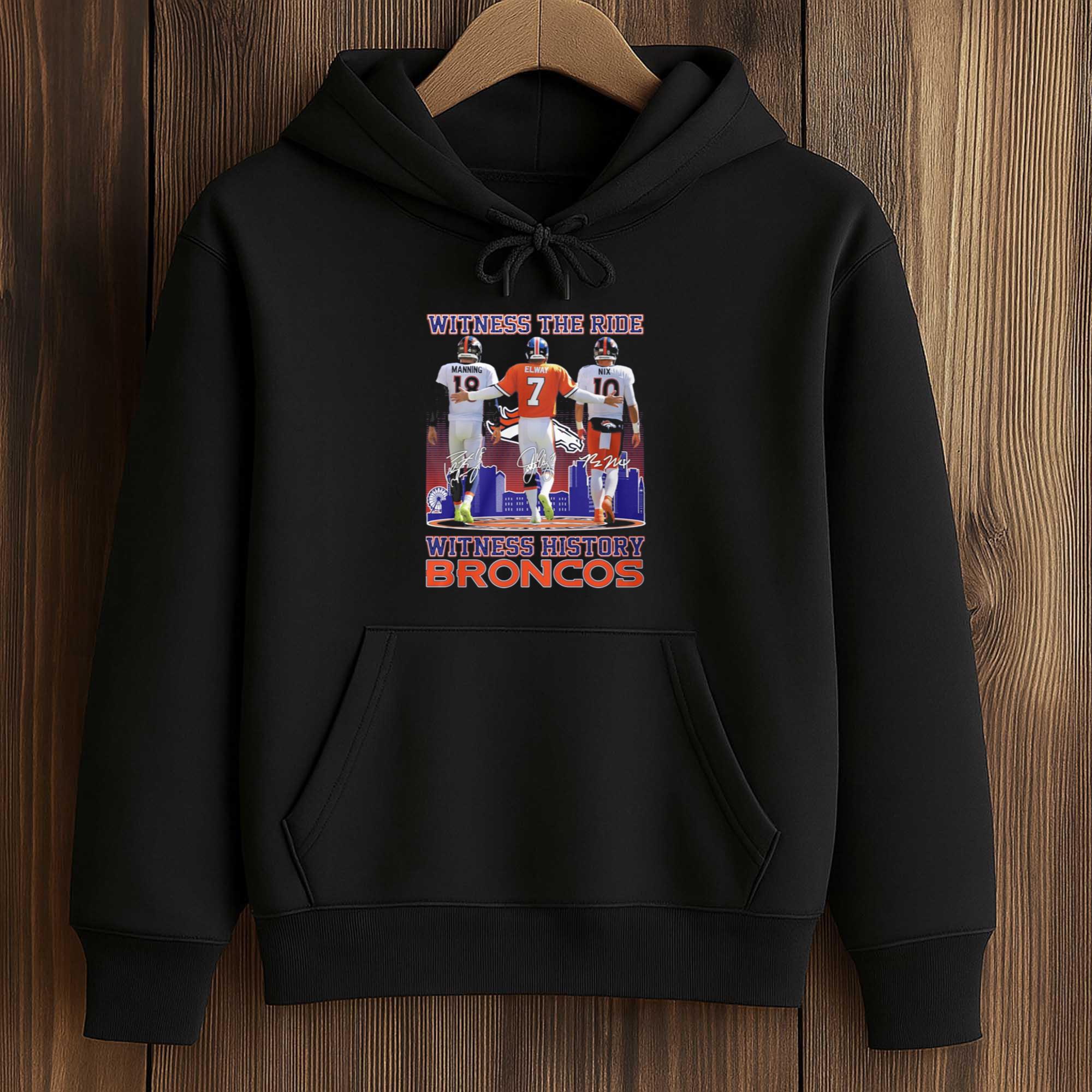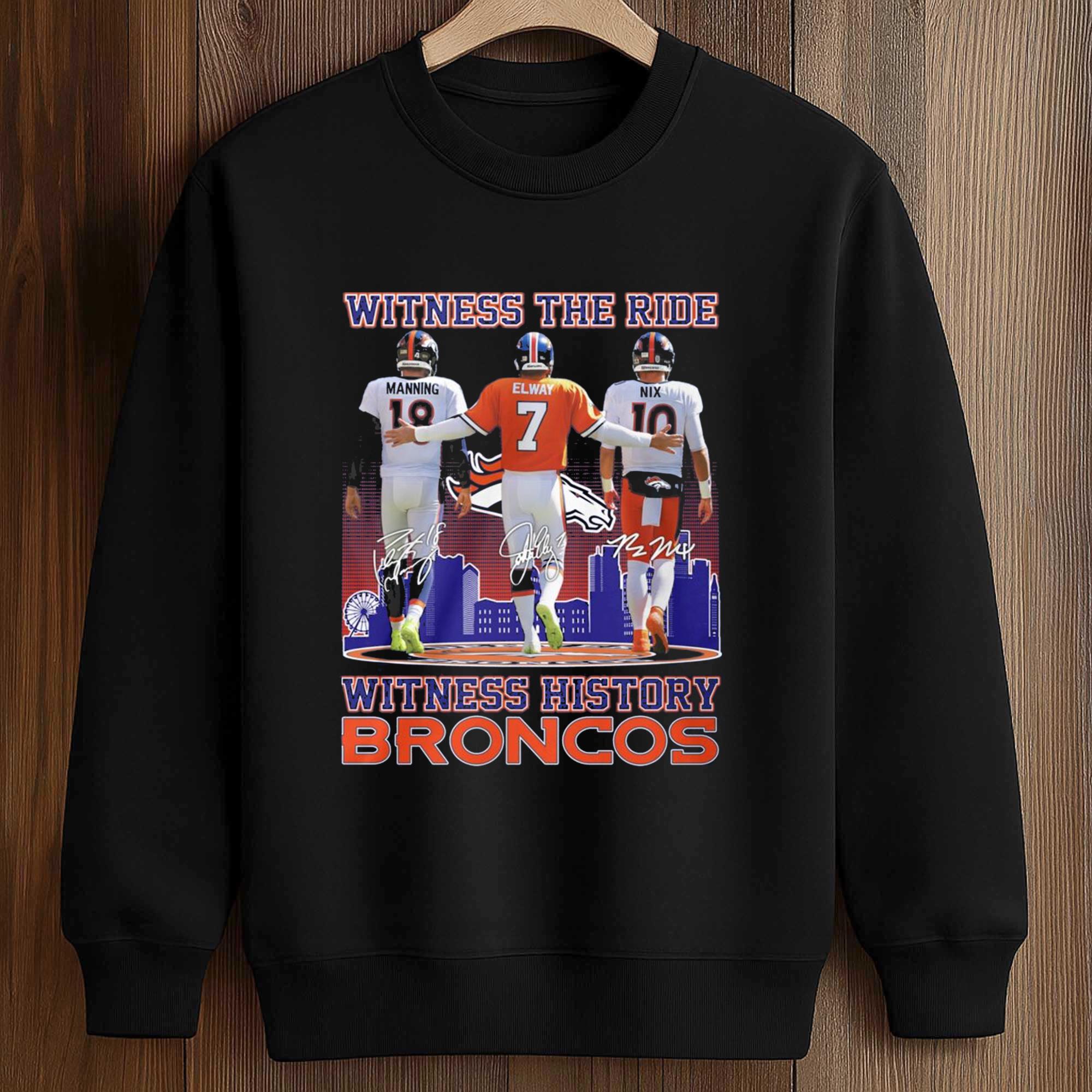The Witness The Ride Witness History Broncos Shirt theme is gaining strong attention as fans look back at the eras of the quarterbacks who shaped the team The ball. New discussions are revolving around legacy, leadership, and transition. Across generations, this design reflects a history built step by step. This shirt resonates strongly with Denver Broncos fans who cherish both past glory and future direction.