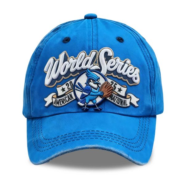 The World Series 2025 American National Blue Jays Baseball Cap embodies the excitement and pride of a championship season. Designed for die-hard baseball fans, this cap features embroidered “World Series 2025” combined with a powerful Blue Jays mascot at the center front. With its bright blue color scheme and high-quality stitching, this hat will stand out instantly whether you’re cheering in the stands at center or representing your team on the street.