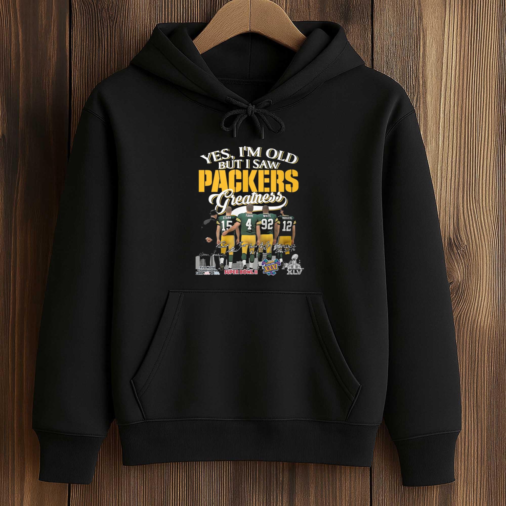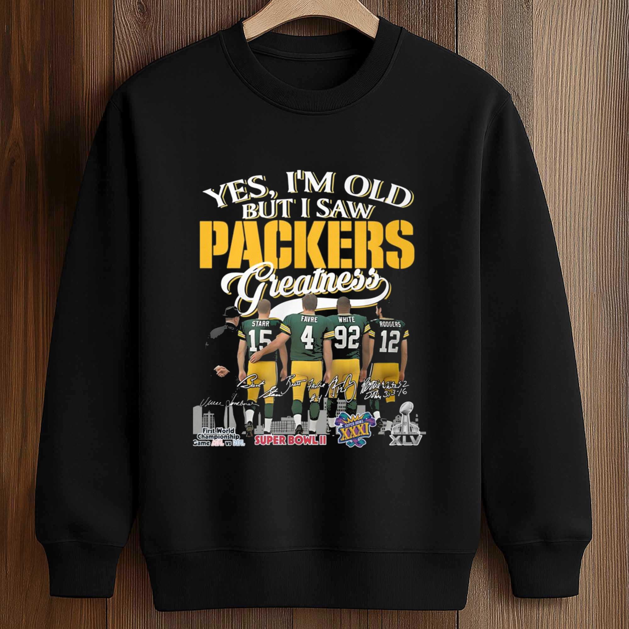 The Yes, I’m Old But I Saw Packers Greatness Shirt combines pride, humor, and history in a bold design. Featuring illustrations of players, classic shirt numbers, and championship-related details, this shirt captures decades of unforgettable moments. It’s the ideal choice for fans who like to share their football memories while wearing a comfortable, meaningful, and versatile shirt for everyday life or match day.