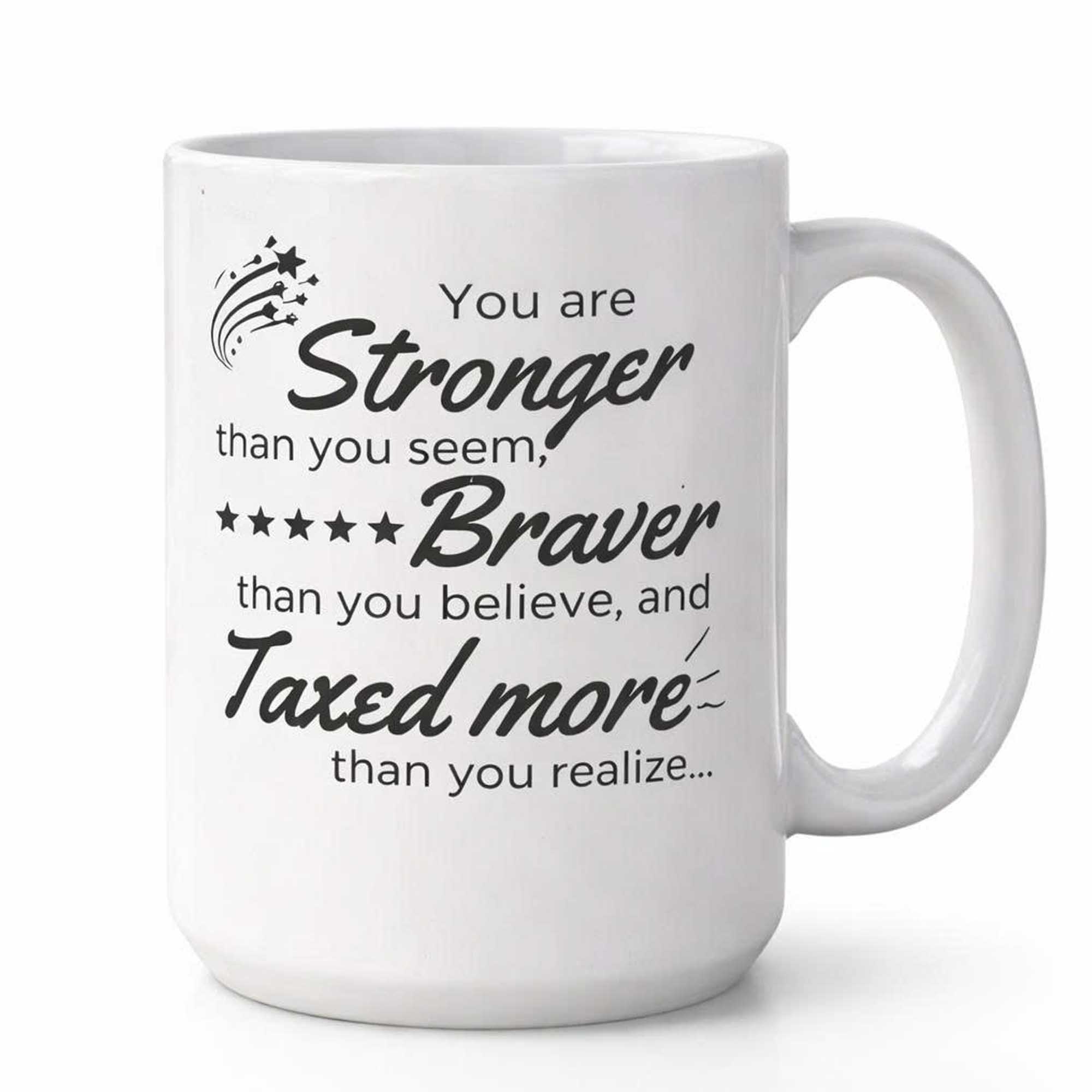 Mug You’re Stronger Than You Think, Braver Than You Think, and More Taxed Than You Realize – A Daily Reminder with a Different Meaning