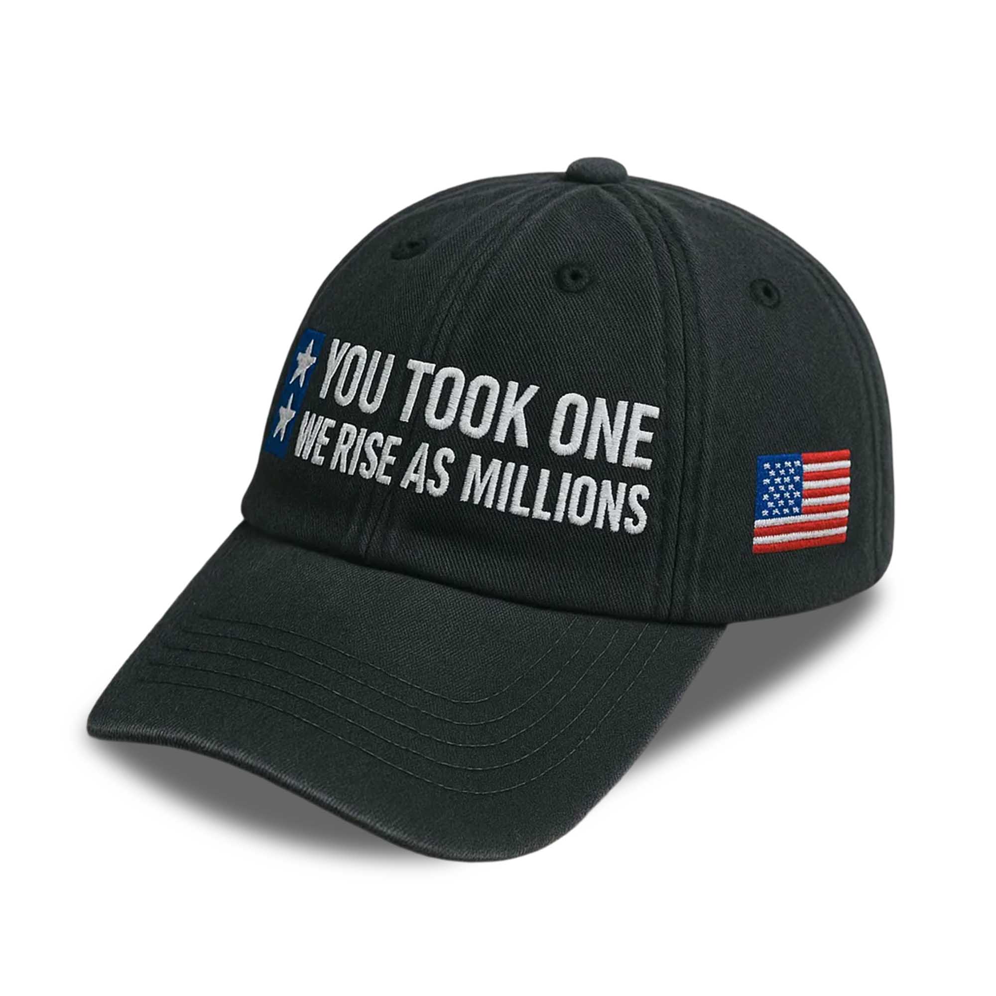 This You Took One, We Rise As Millions Hat delivers a message that goes beyond the page. “You Took One, We Rise As Millions” is a rallying cry – a declaration of collective strength and resilience. It’s the kind of statement that connects people through shared values, making this hat more than just an accessory. It’s a cute symbol.